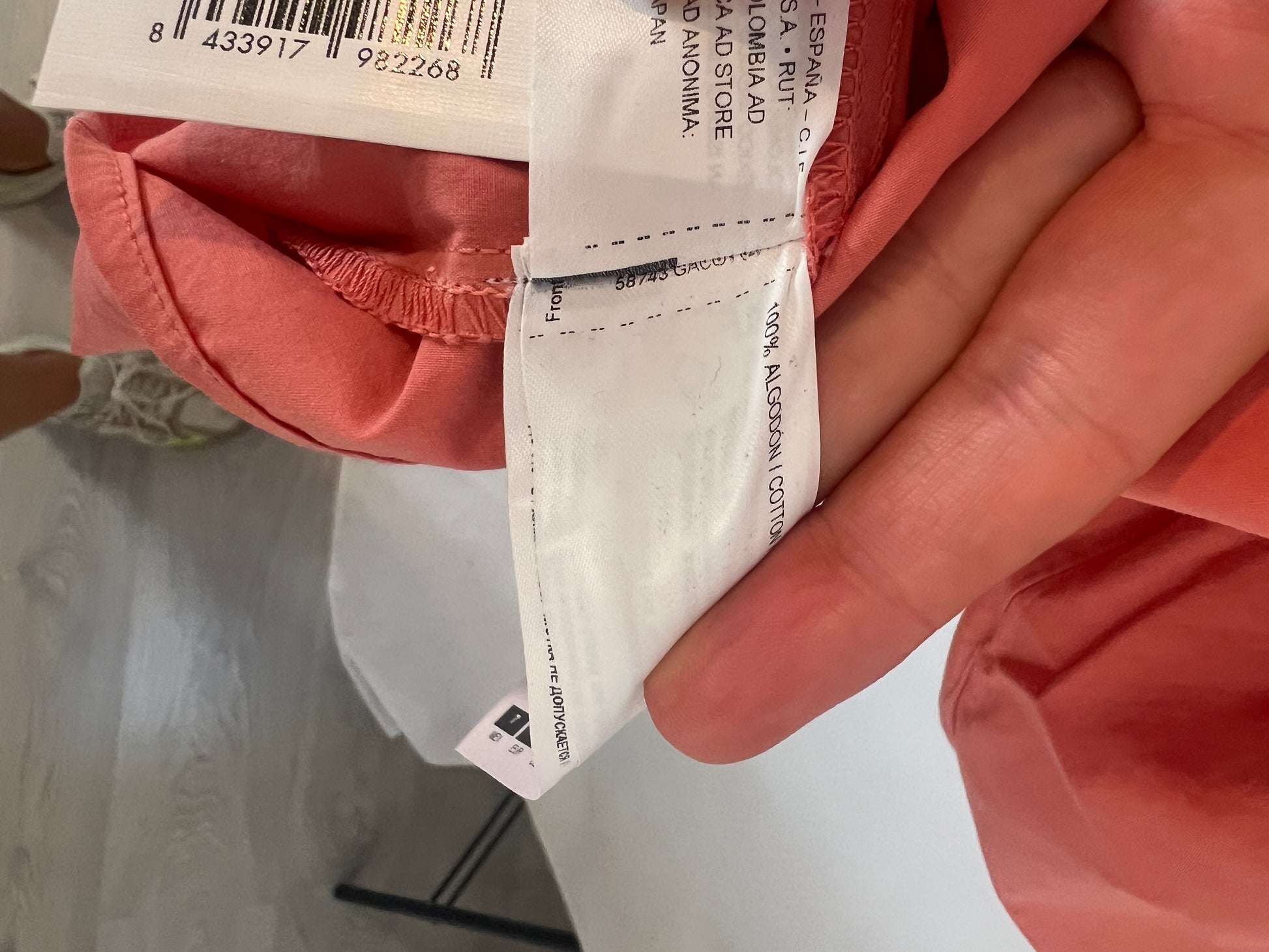 Coral puff-sleeve blouse. 53 cm from armpit to armpit, 61 cm back length.