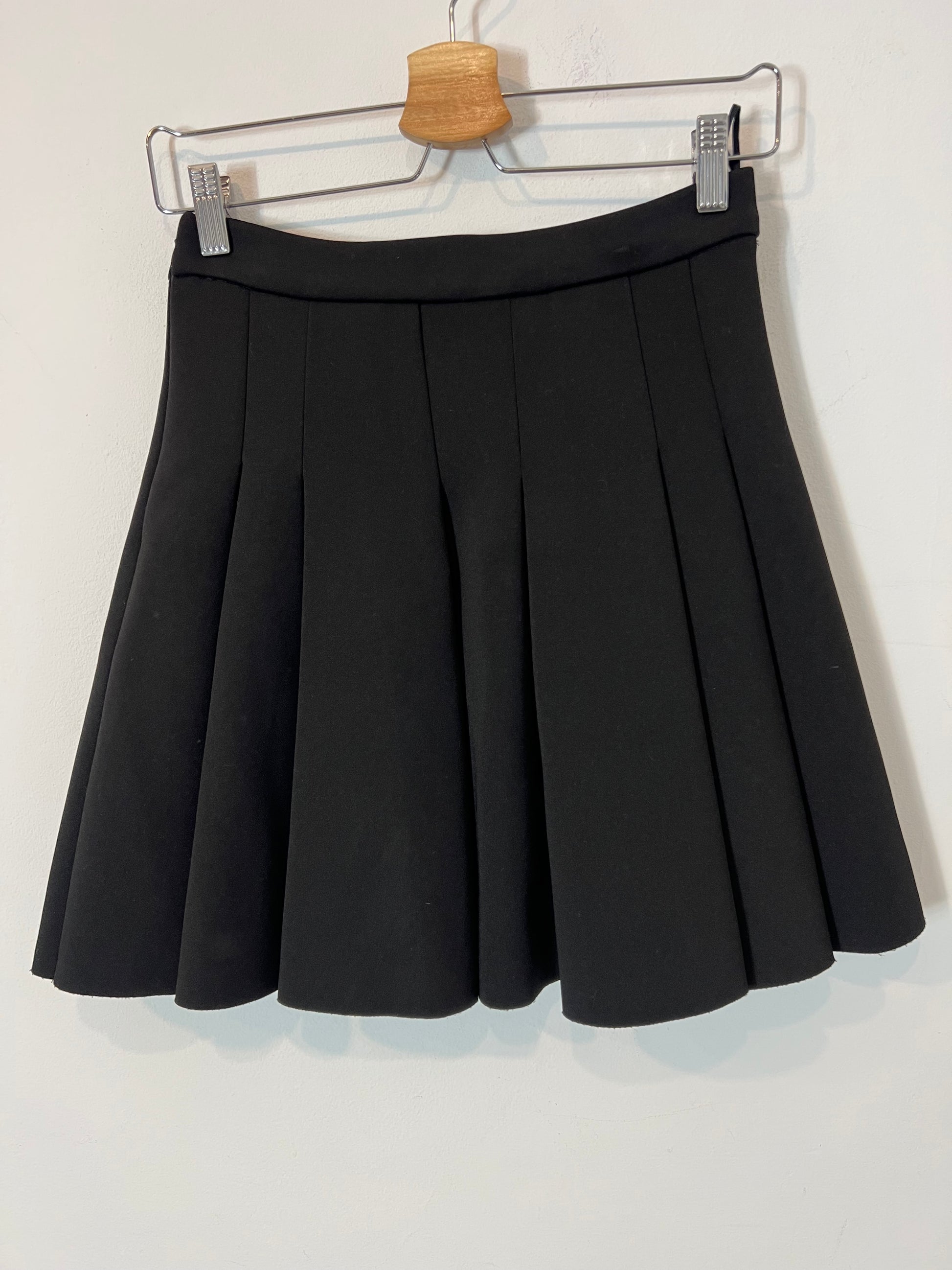 falda corta negra de tablas con tejido de neopreno. Cintura 34 cm largo 45 cm