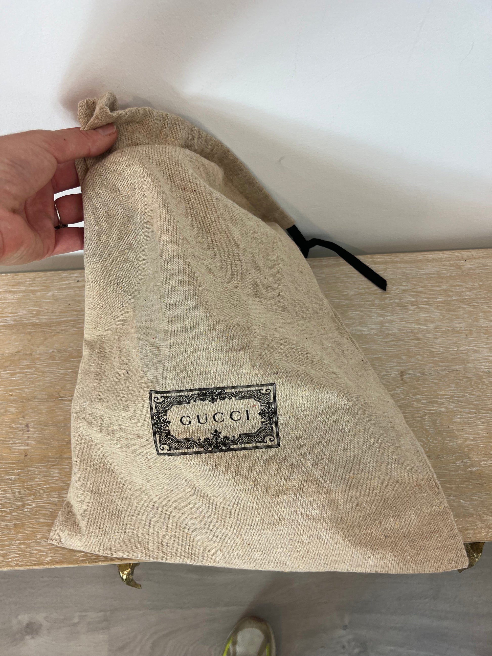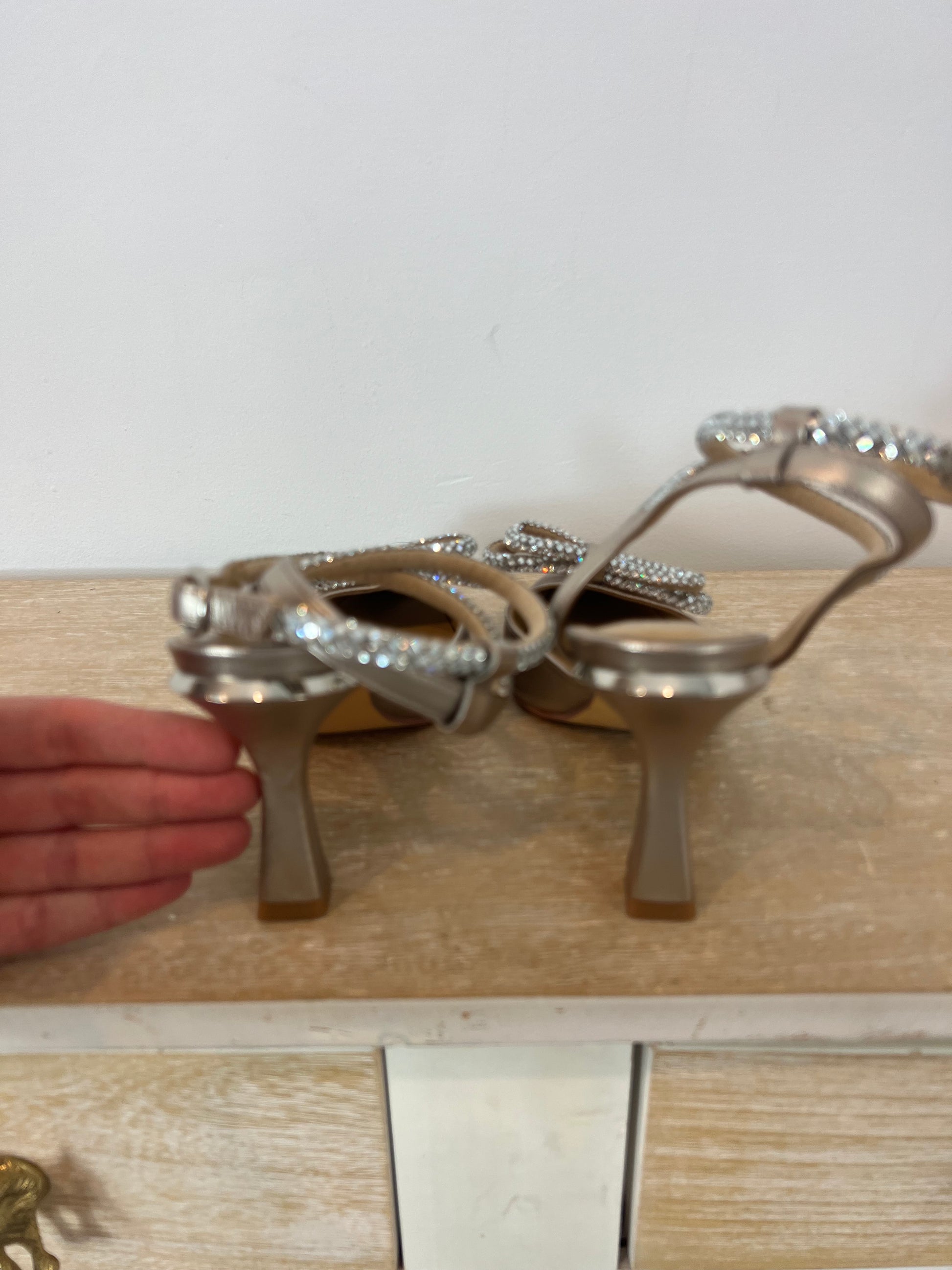 golden shoes with rhinestone detail and bow