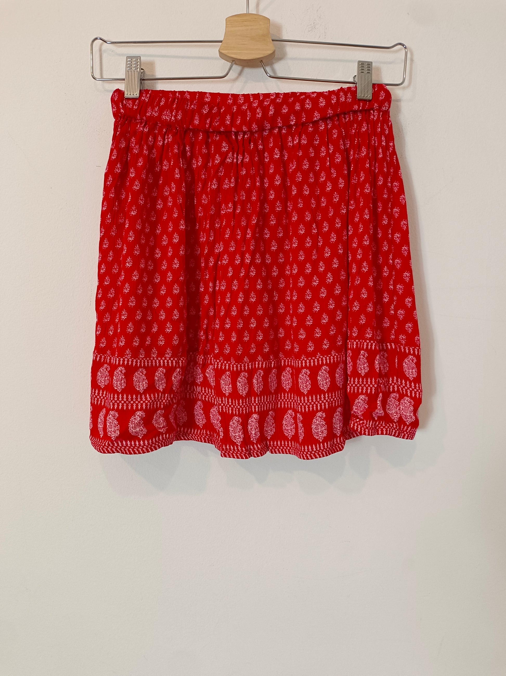 NEW WITH TAG. Short red skirt with white print. Elastic waist. Length cm