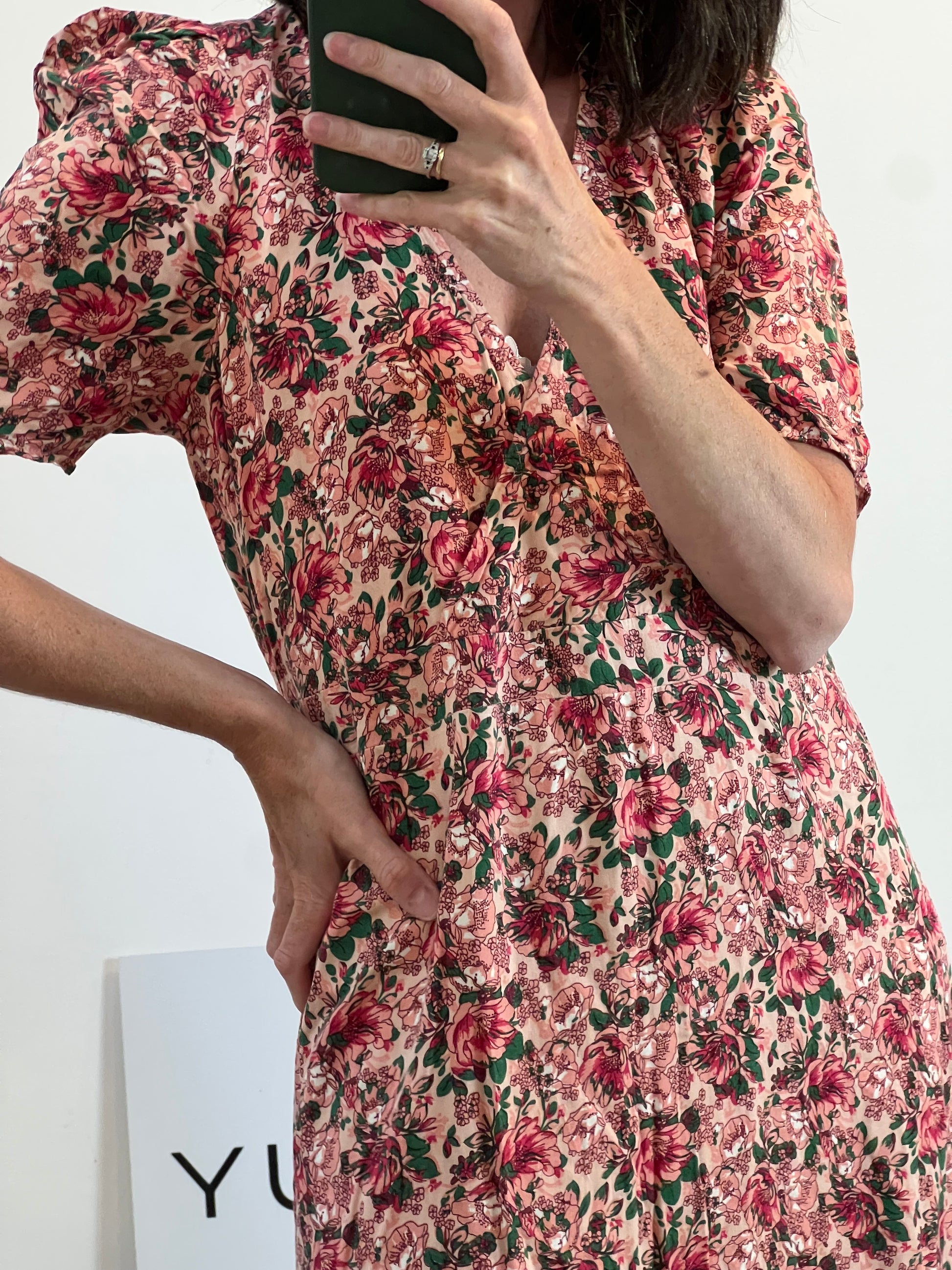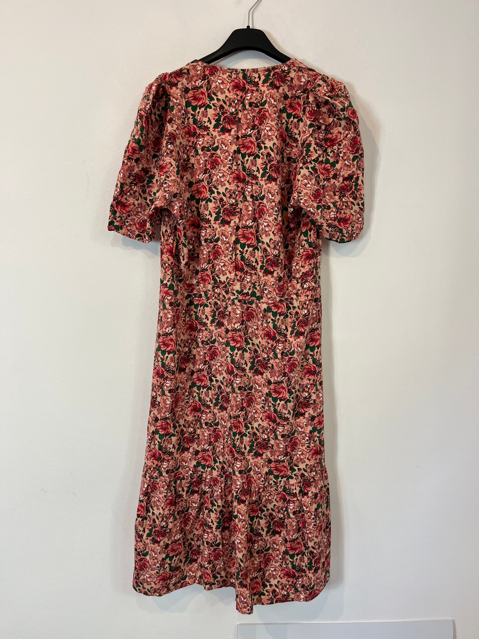 Rose print midi dress. Back 49 cm, length 107 cm.
