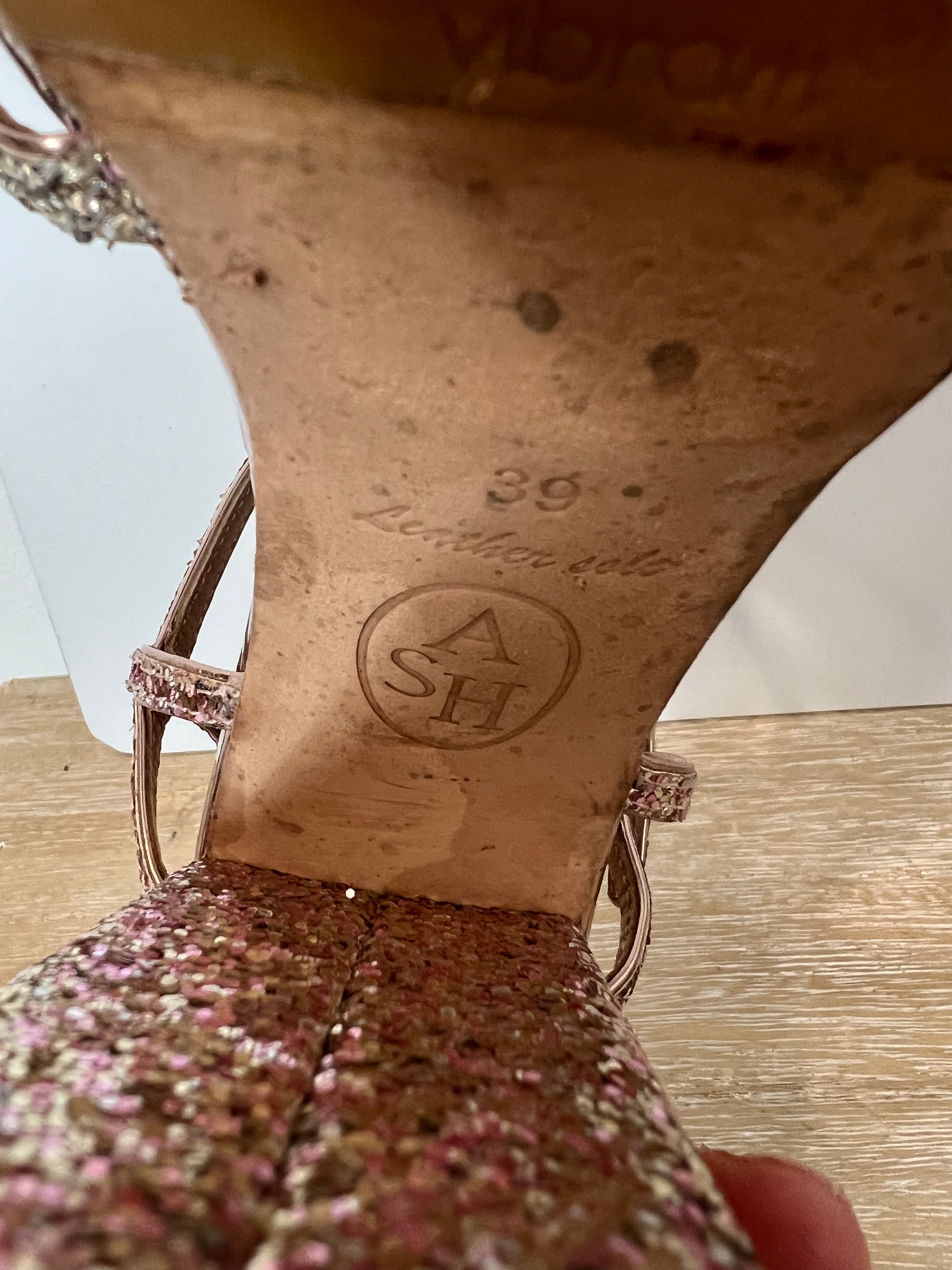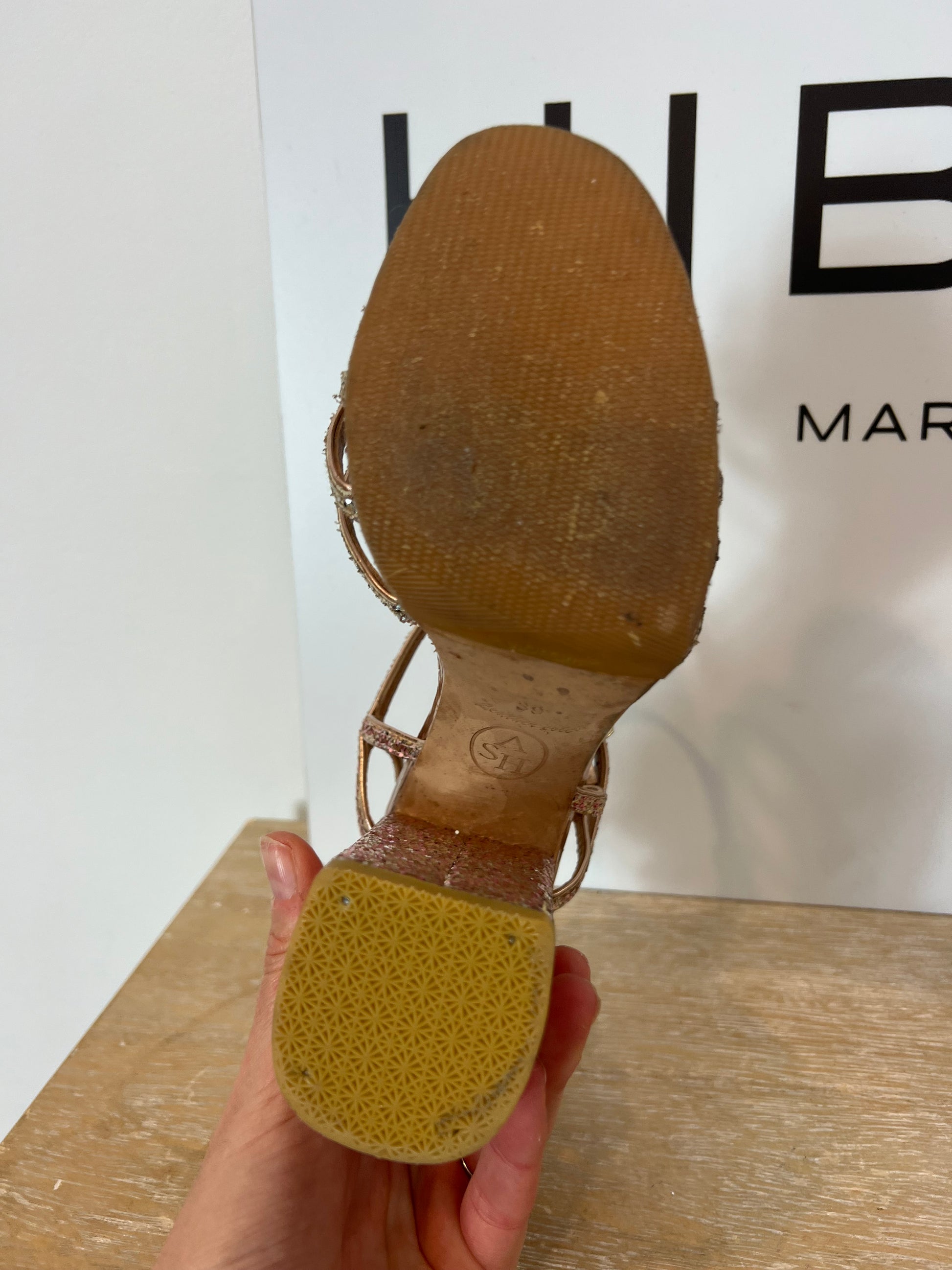 Sequin platform sandal. Heel height 13 cm. Mark: heel mark (photo)