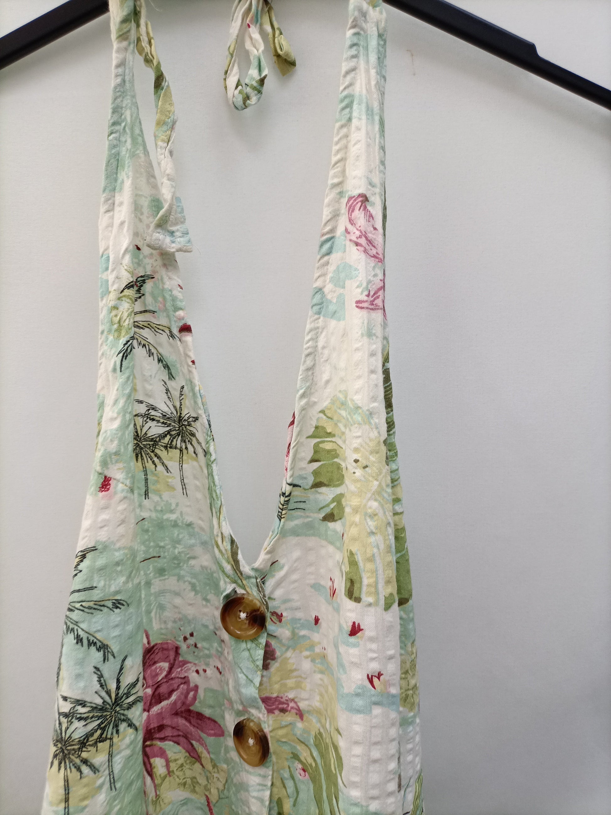 Printed short jumpsuit with open back. . Size L on label