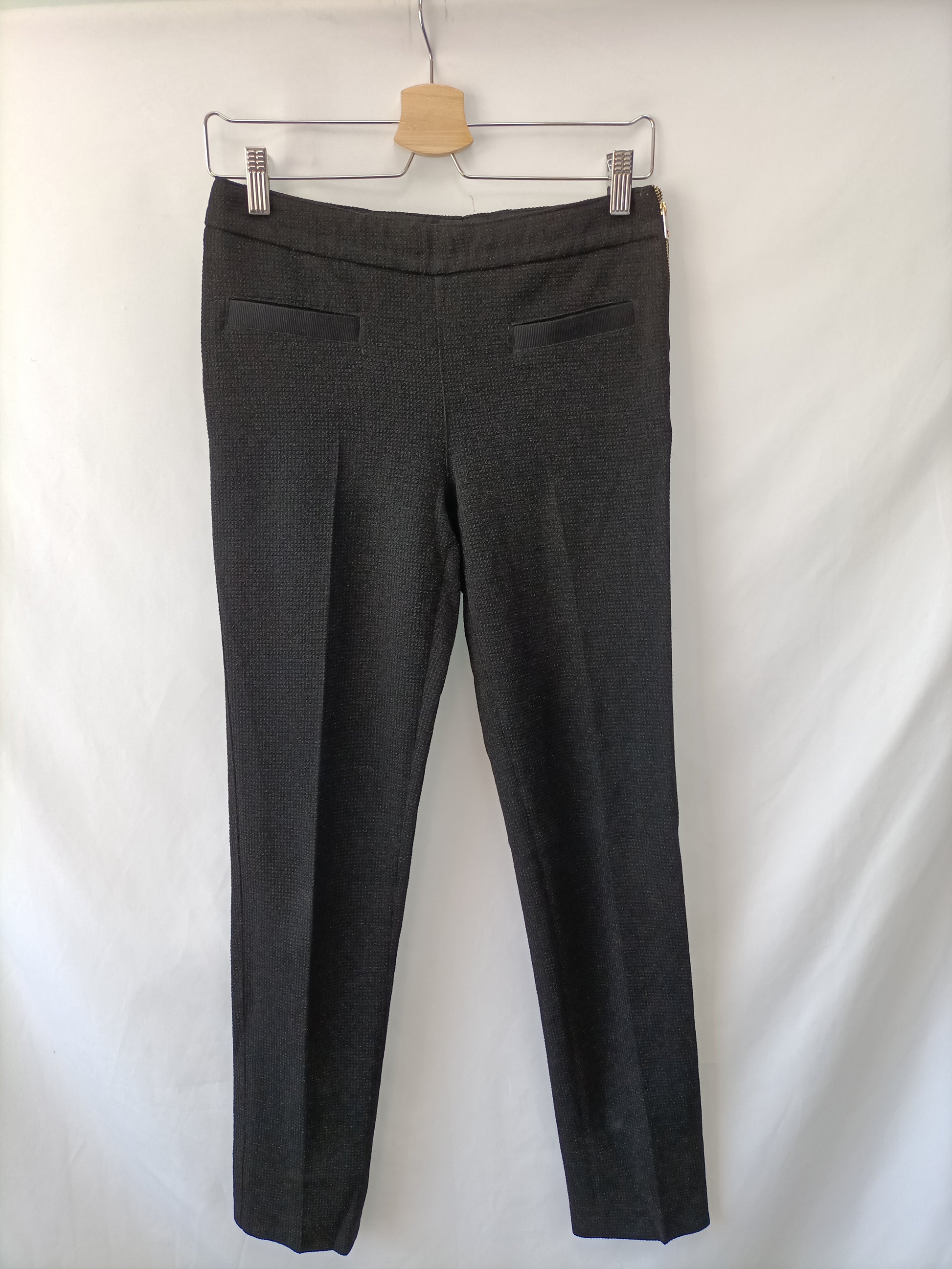 Atos Lombardini. Black dress pants with shiny threads. Elastic waist. 37 cm, length 96 cm. Total look with jacket.
