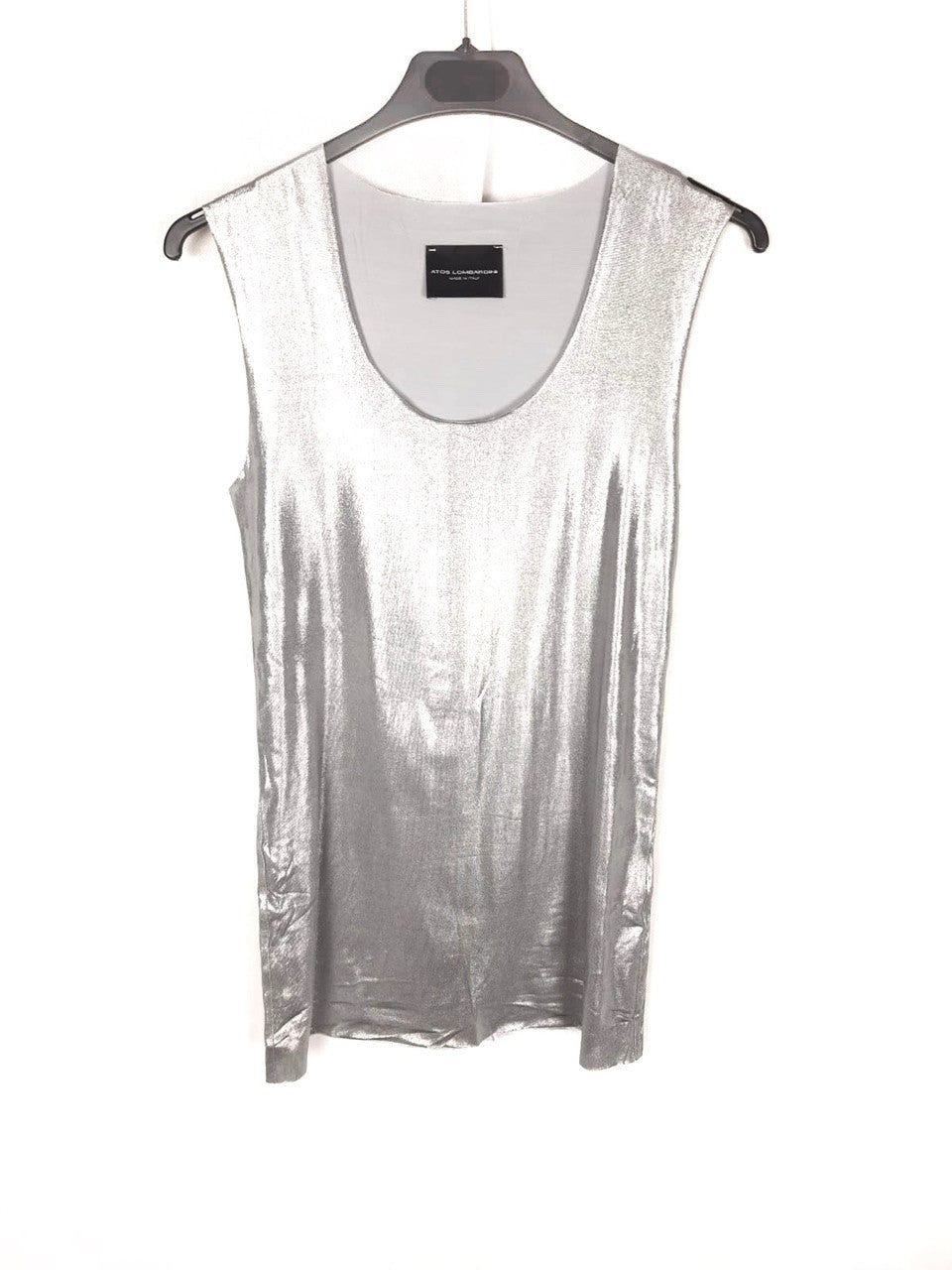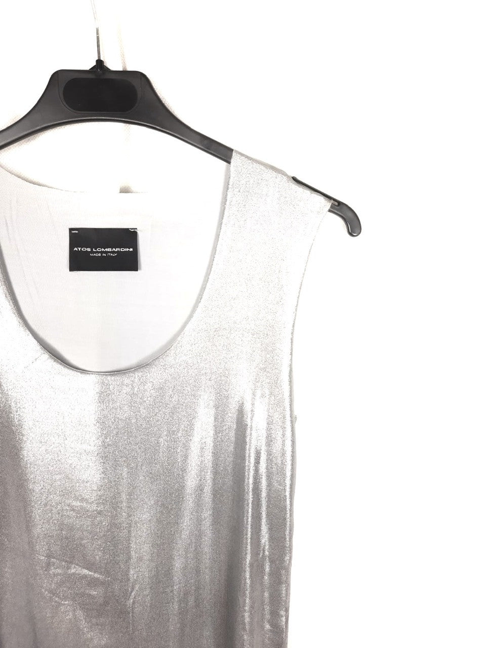 Atos Lombardi. Flowing, stretchy silver top. 72 cm long.