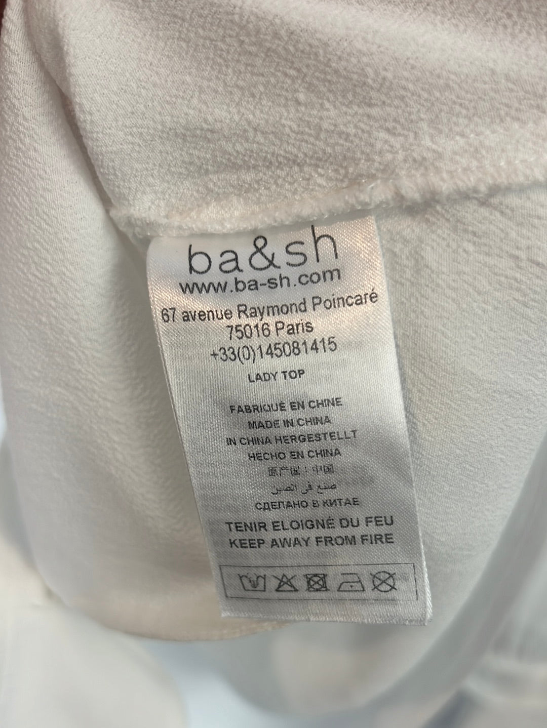 Flowy white blouse with a ruffle detail at the neckline. Tare: a small, almost imperceptible stain on the back. From armpit to armpit 51 cm, length 62 cm