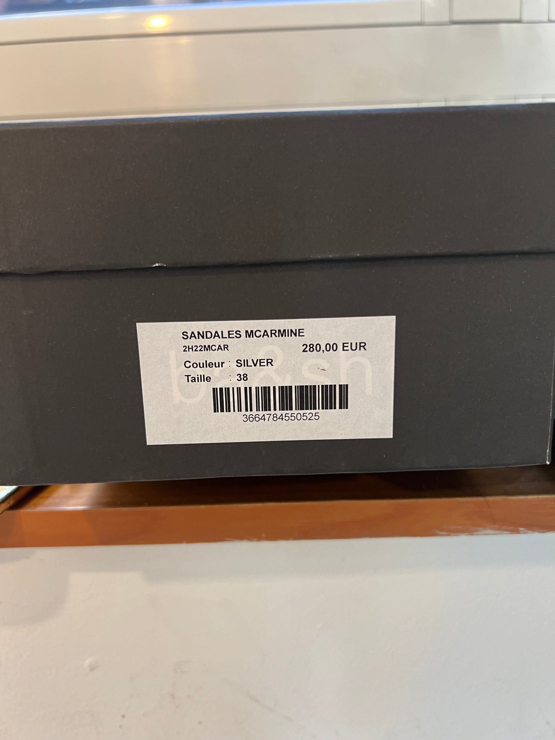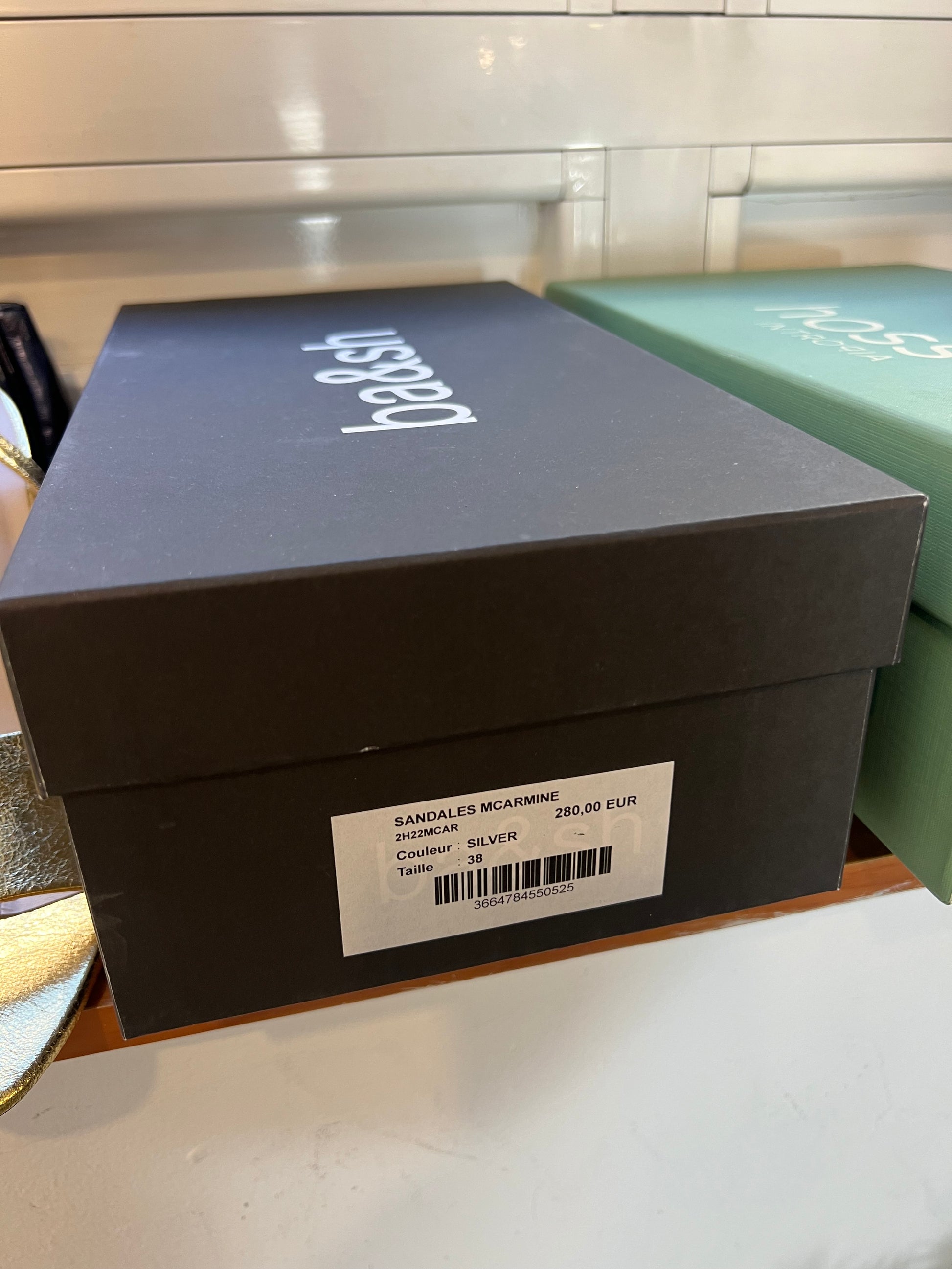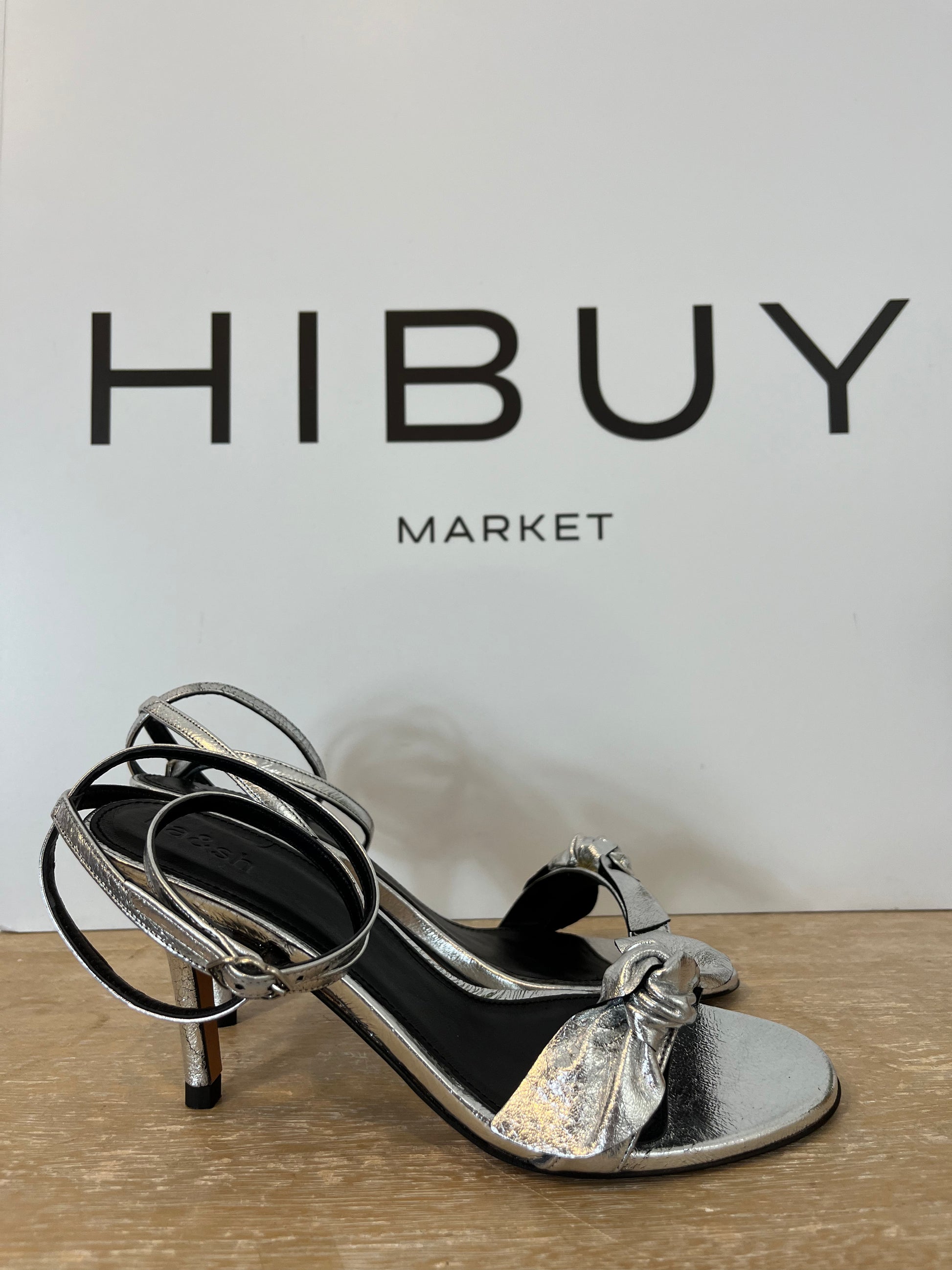 NEW WITH TAG. Silver bow sandal. 9 cm heel height.