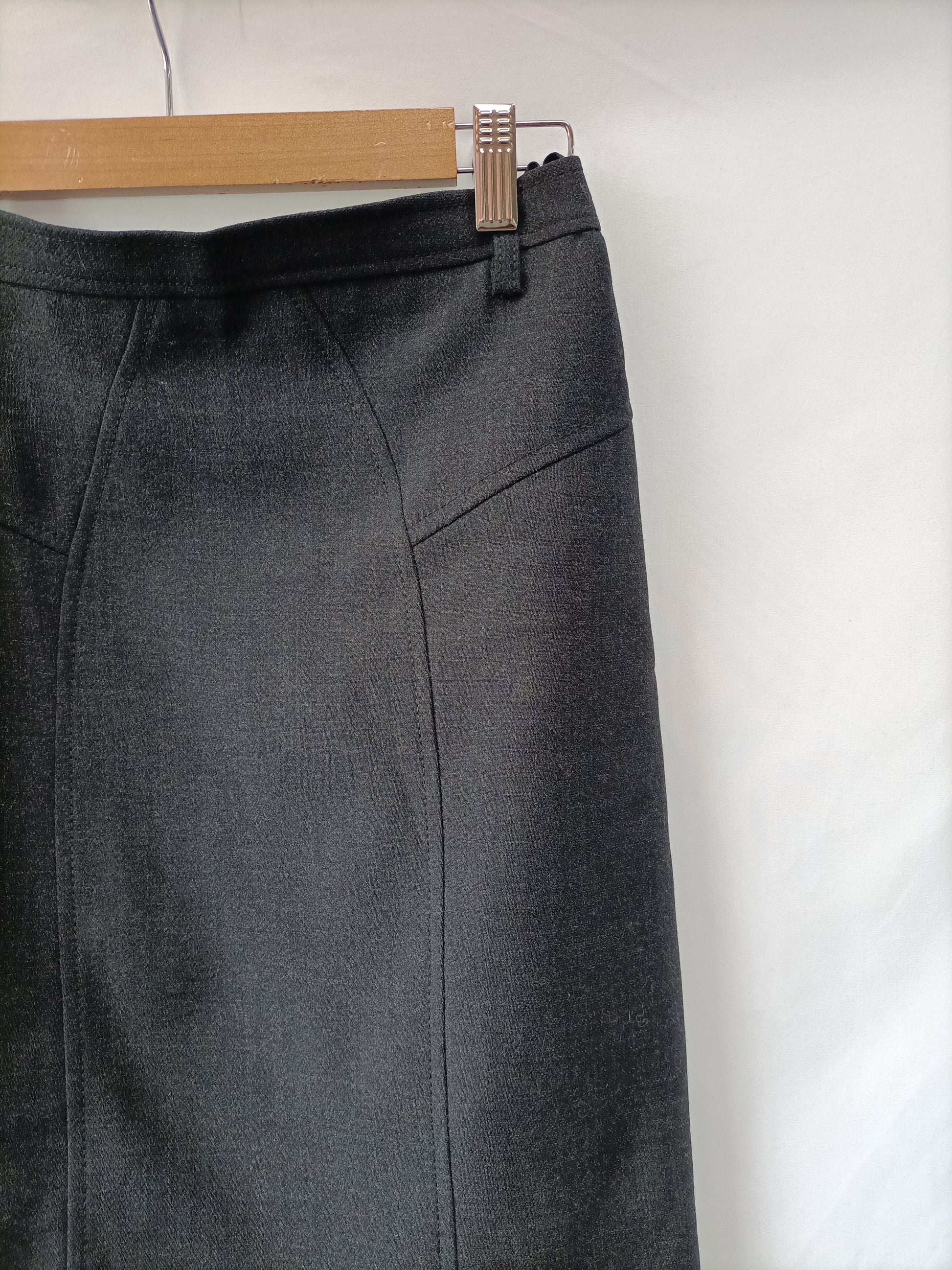 Others. Short, non-stretch dress-style grayish black skirt. Waist 35 cm, length 53 cm.