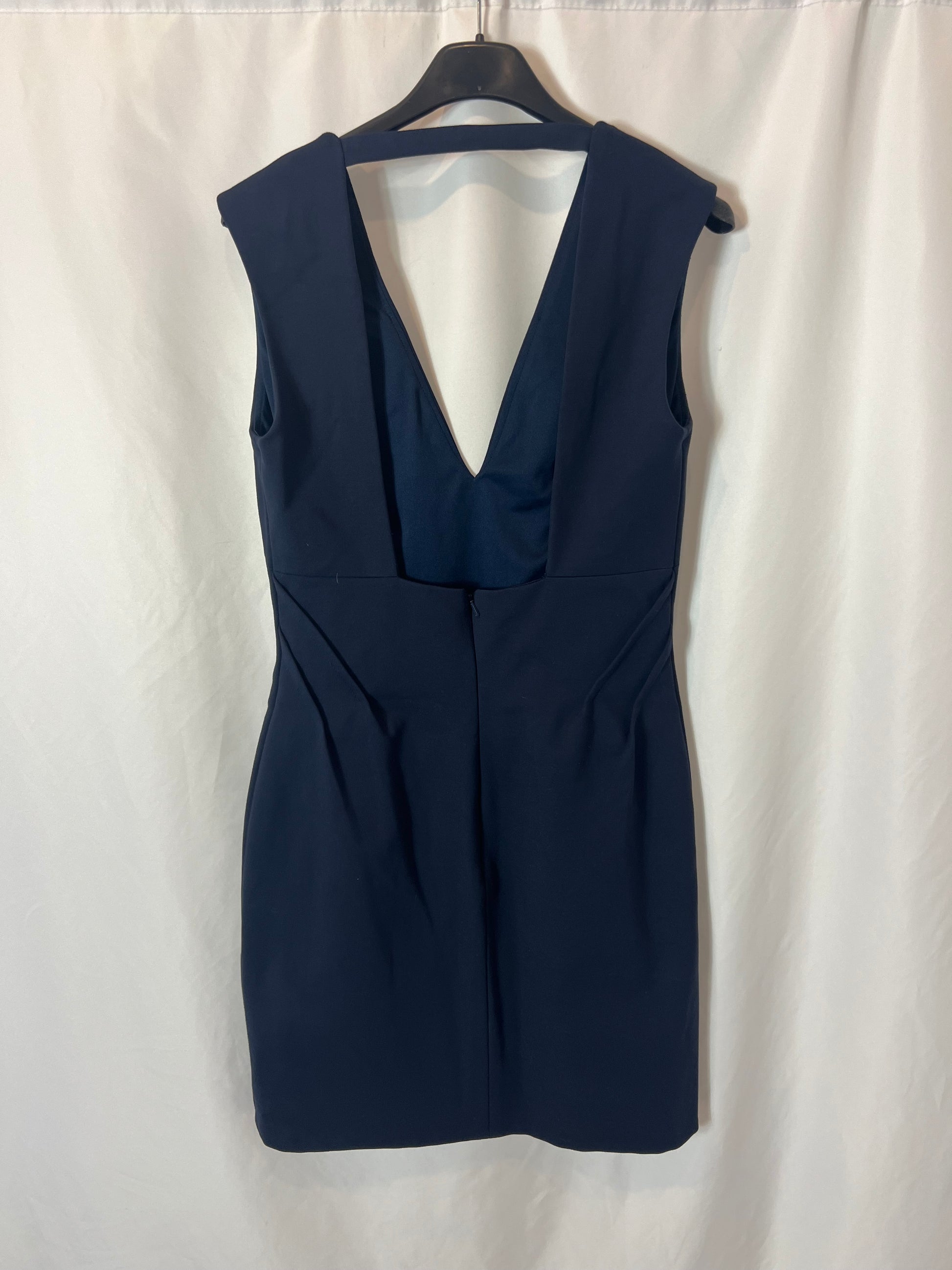 Vestido corto azul tejido elástico con la espalda baja . De sisa a sisa 40cm, cintura 36cm, largo 84cm