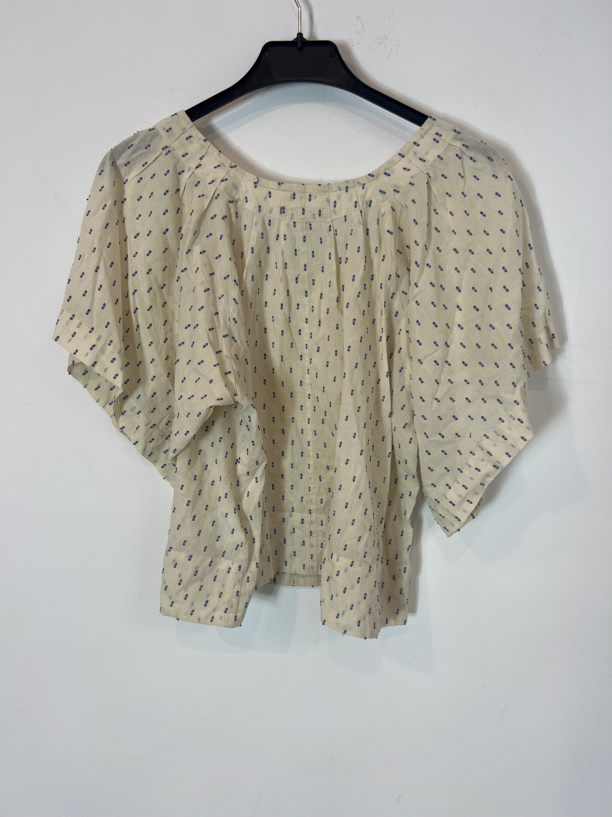 BELLEROSE. Beige blouse with blue embroidery S.1(s)