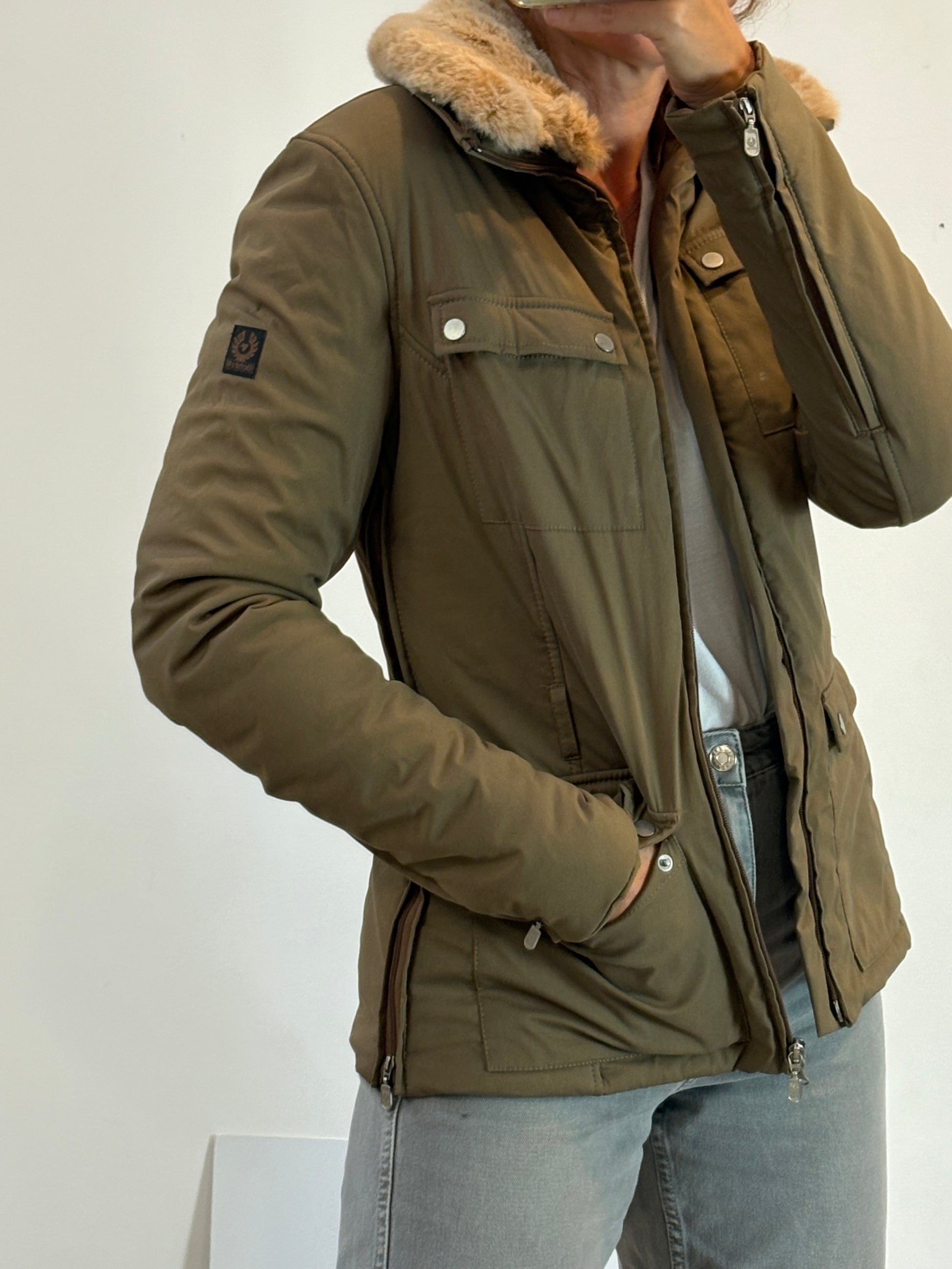 BELSTAFF. Khaki green quilted jacket with pockets. TM