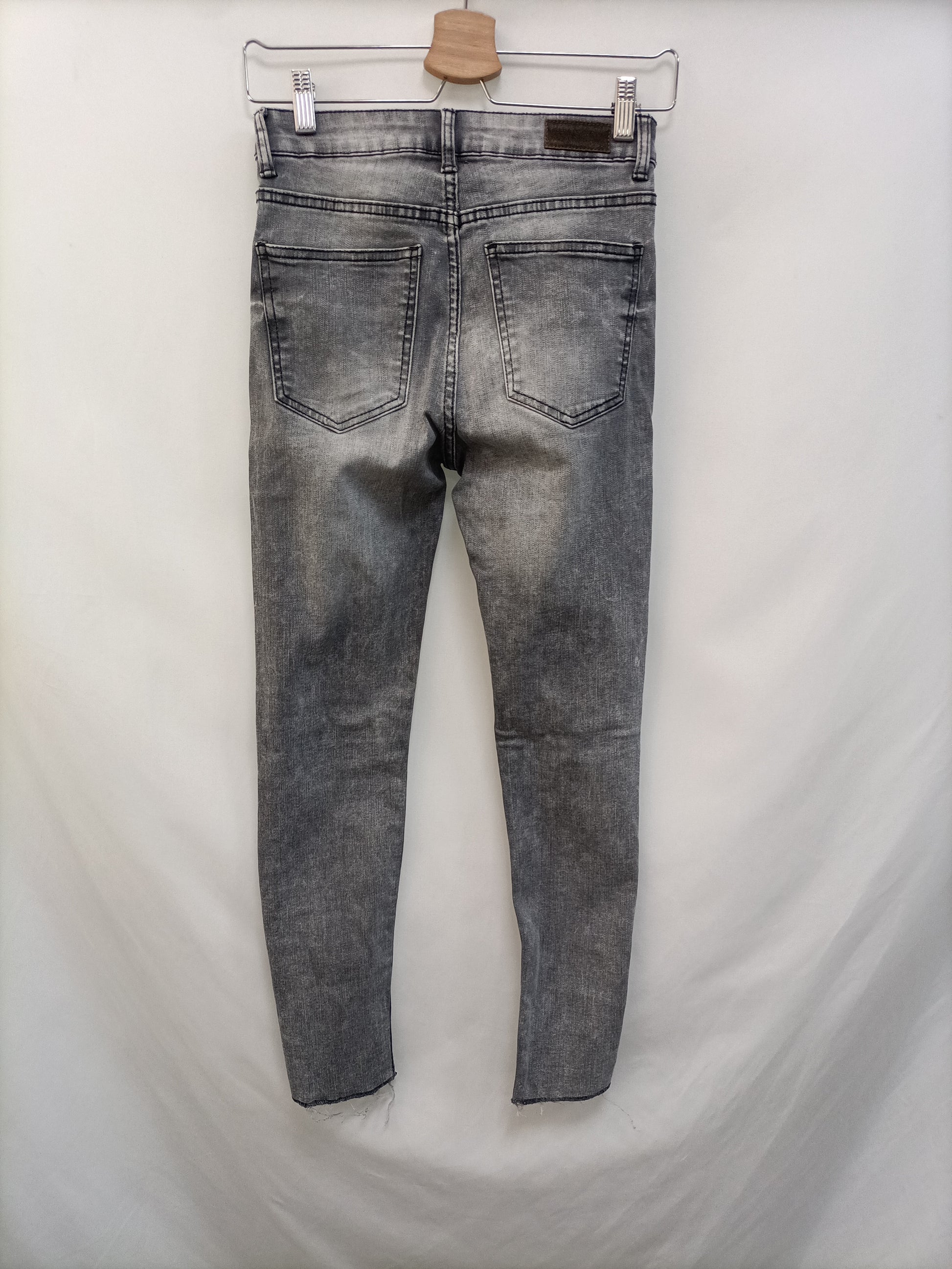 Light gray denim pants with visible buttons. Waist 34 cm, length 92 cm.