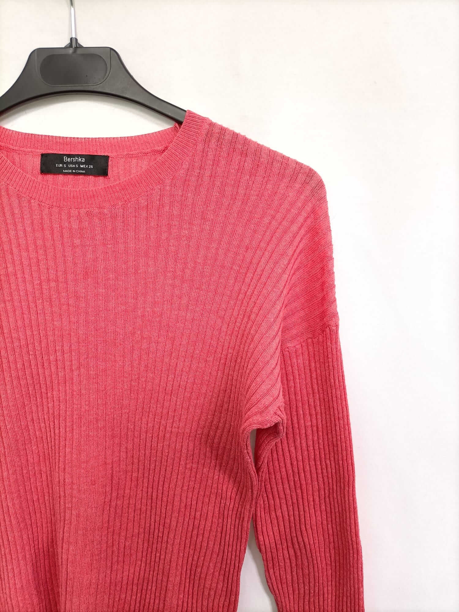 Bershka. S. Coral pink ribbed knit top. Fitted and stretchy. Length 51 cm.