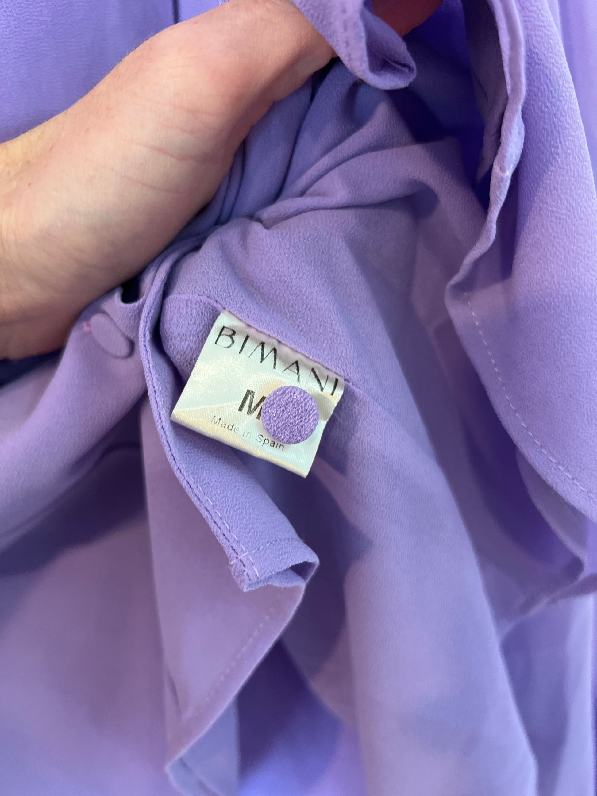 Flowing mauve blouse with collar. 57 cm from armhole to armhole, 65 cm long.