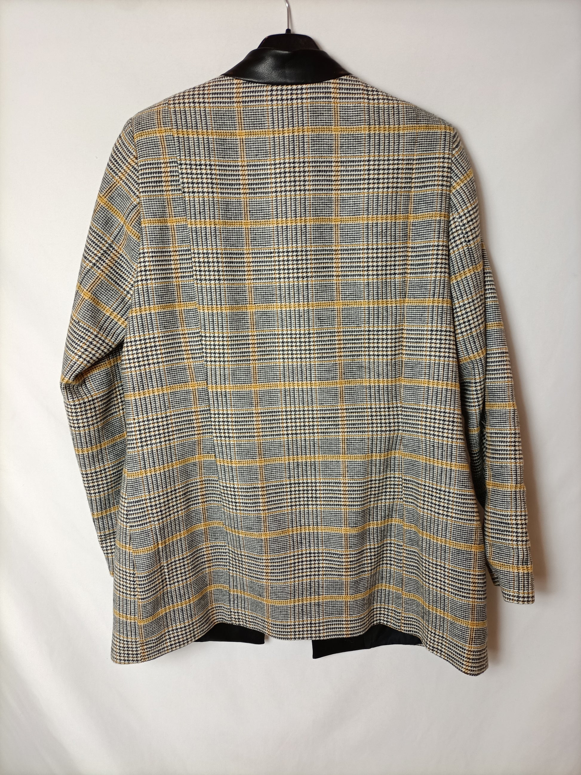 black and mustard checked jacket with leatherette details and jewel buttons.