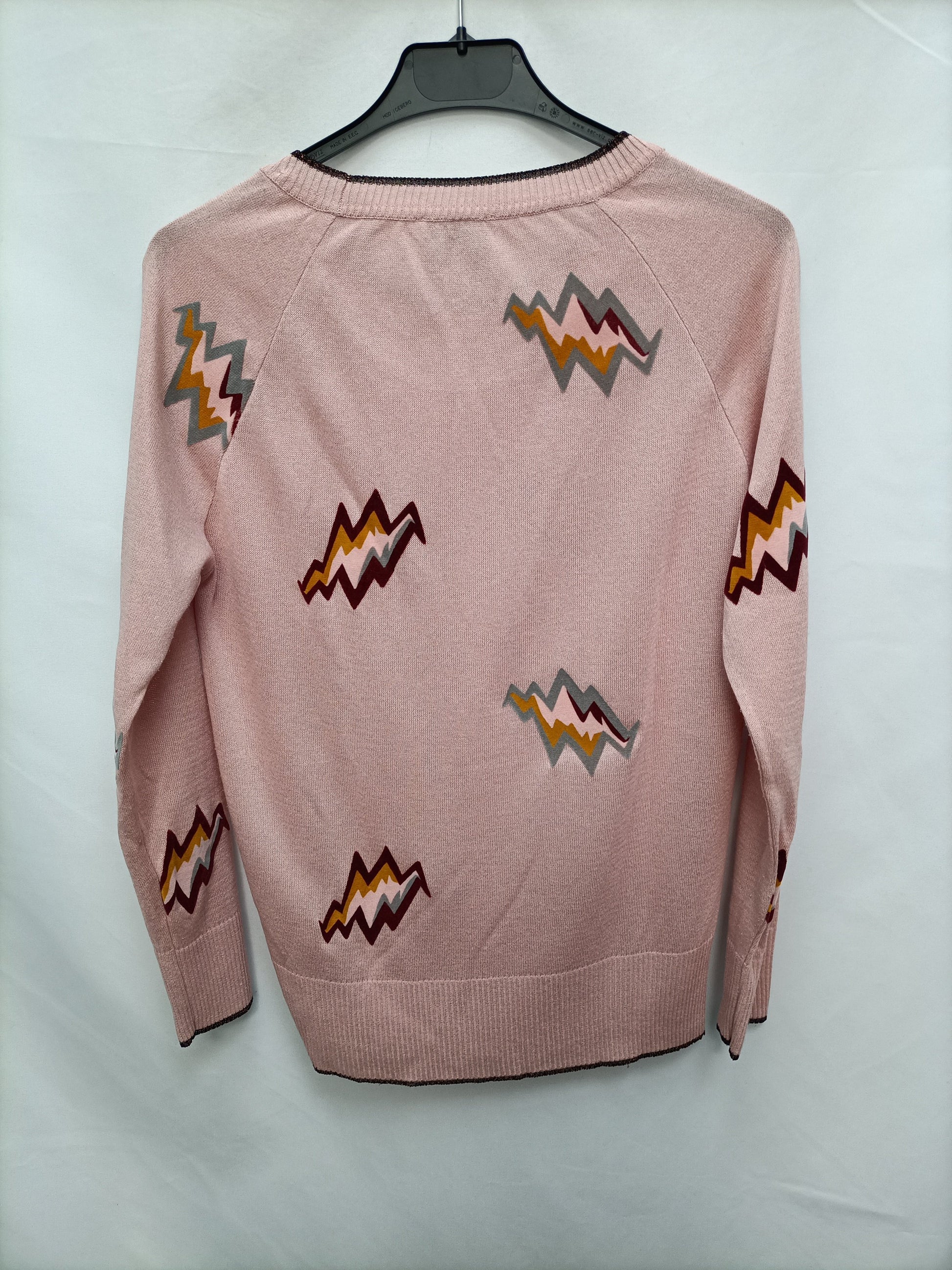 Pink lightning bolt print velvet sweater. Stretchy. 128 cm long.