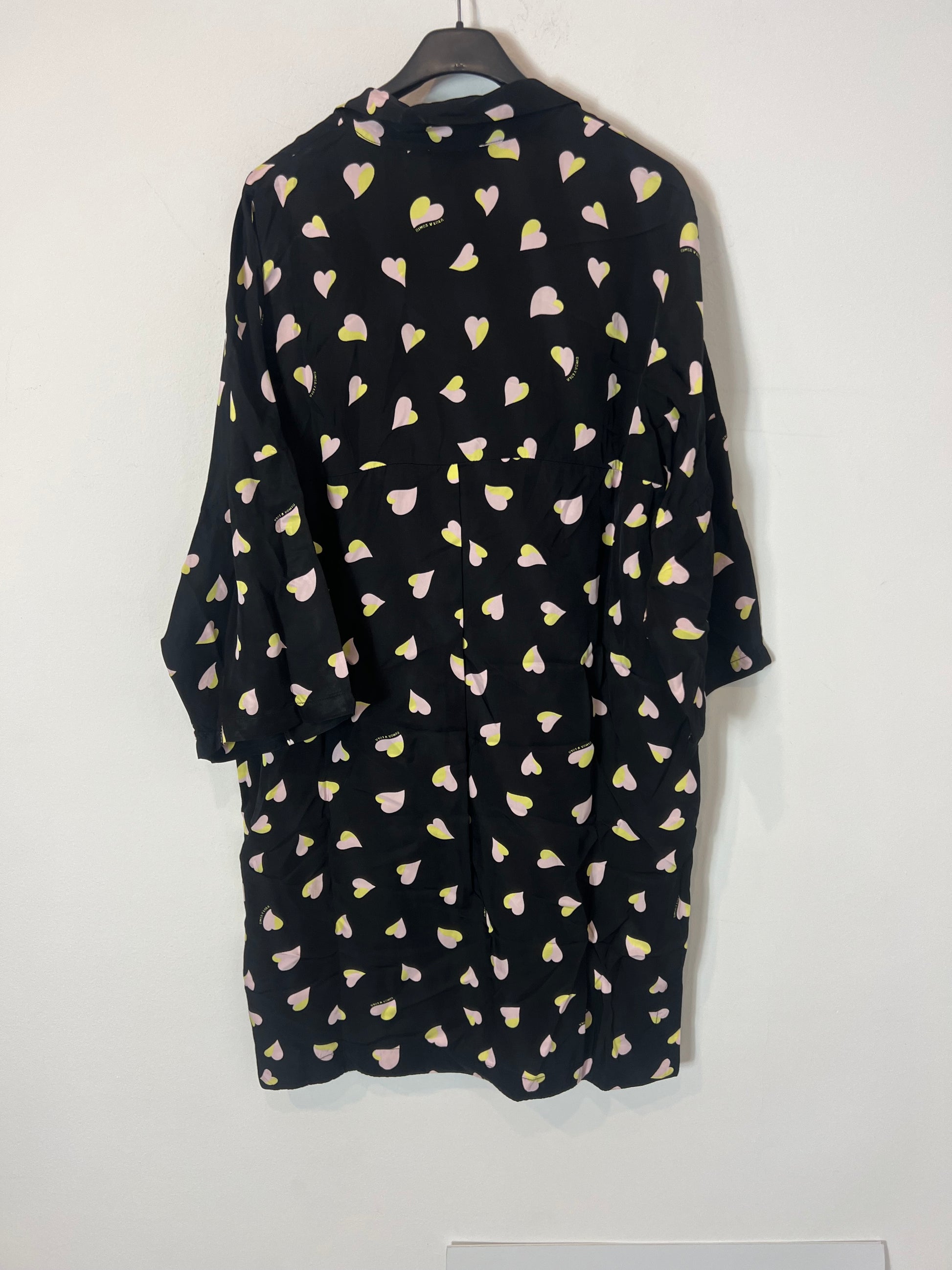 Flowing black shirt dress with hearts. 57cm from armhole to armhole, 90cm long.