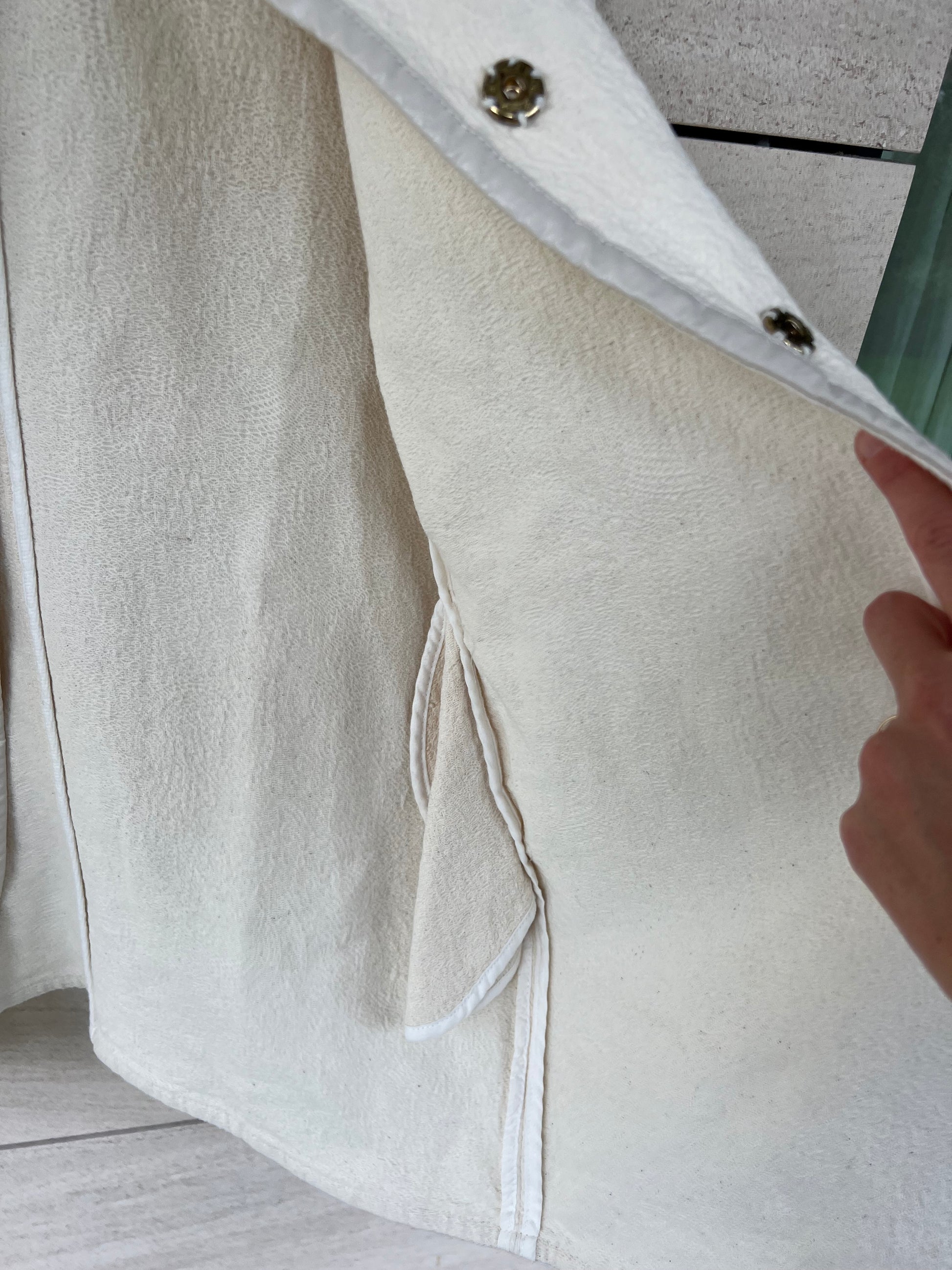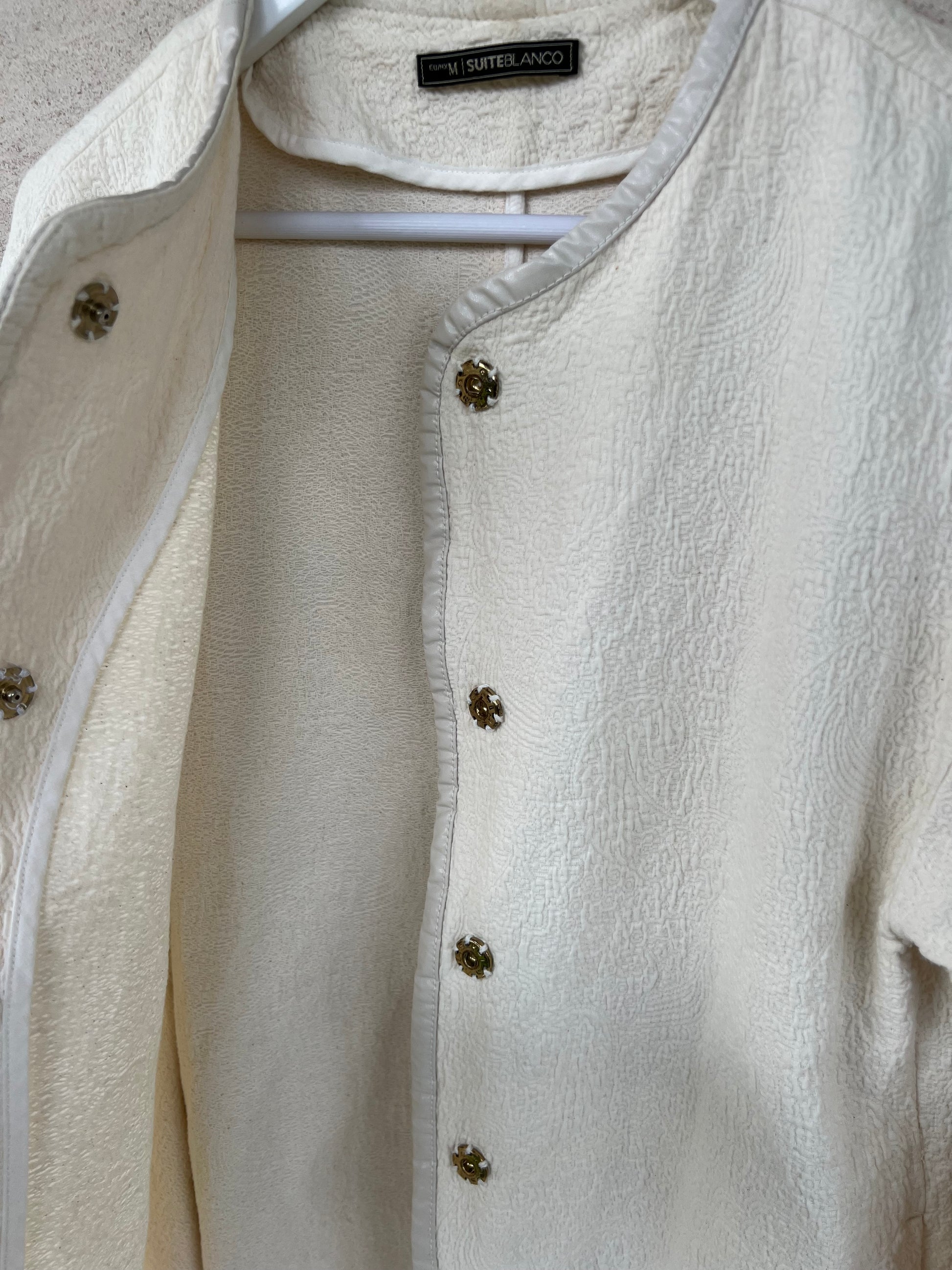 Off-white textured jacket. Faux leather details. Back 50cm, length 78cm.