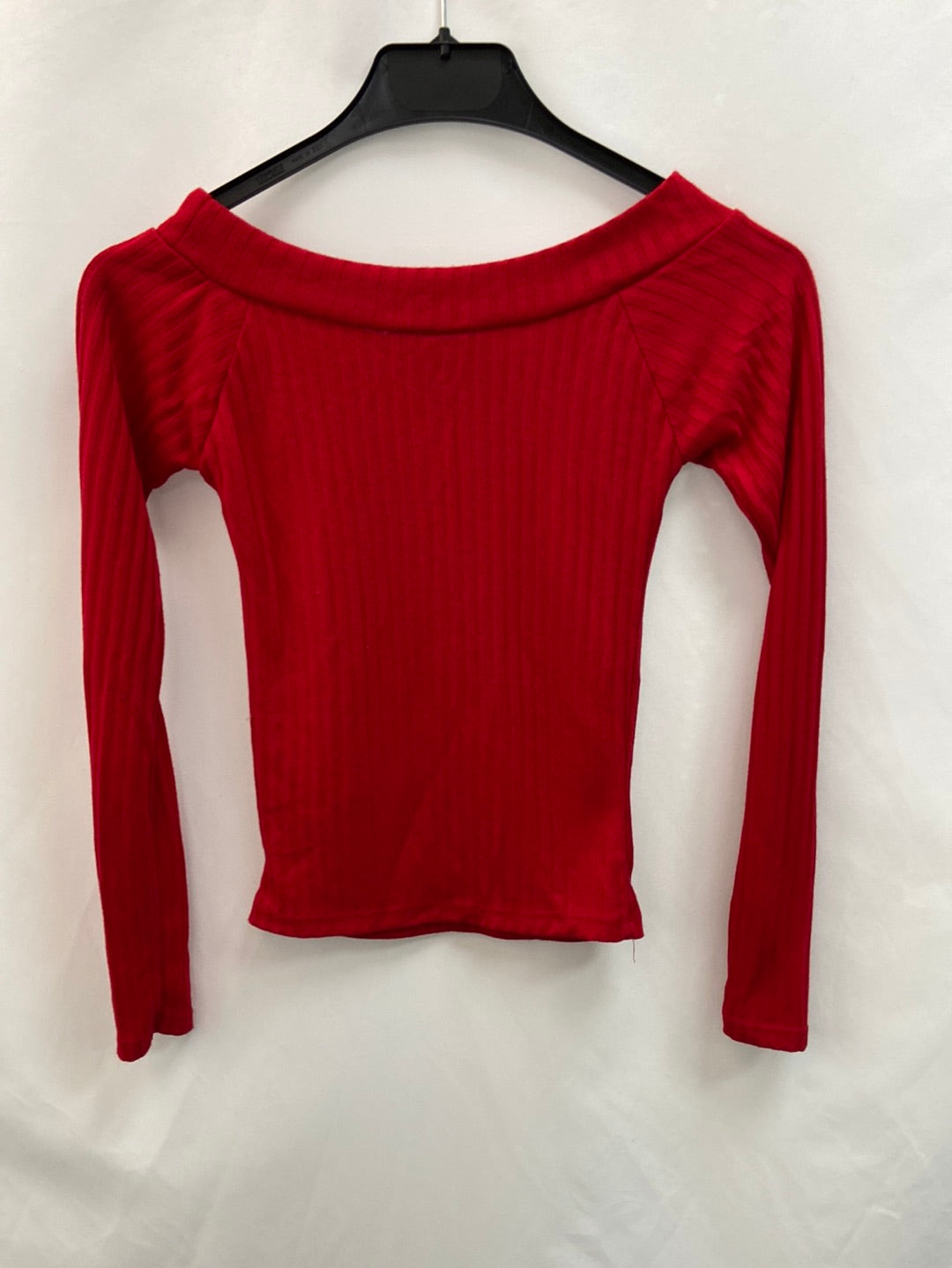 Top rojo de punto de canalé elástico y cuello amplio. De sisa sisa 30 cm, largo 40 cm