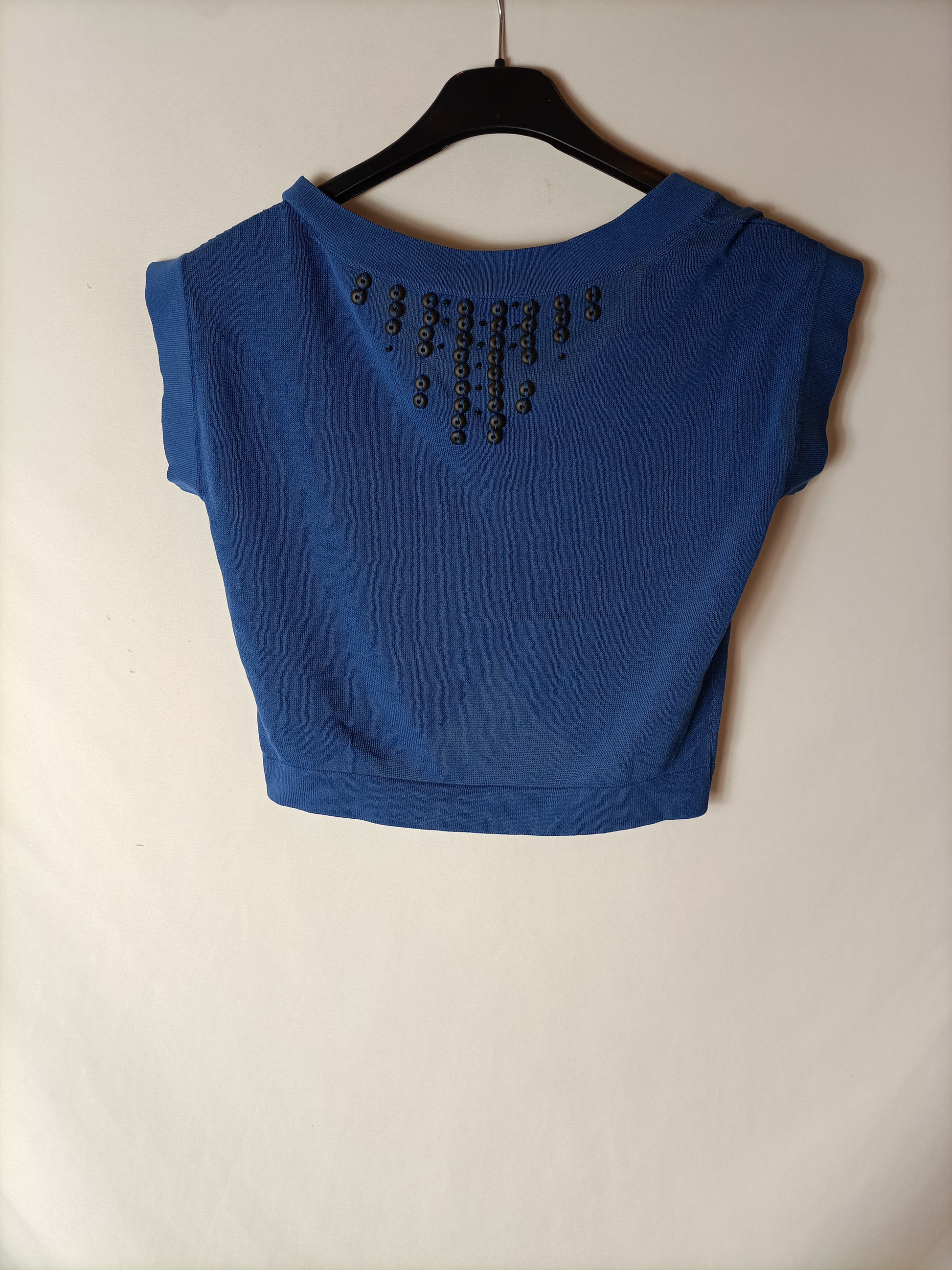 100% cotton. Blue torerita with back detail. Slightly stretchy fabric.