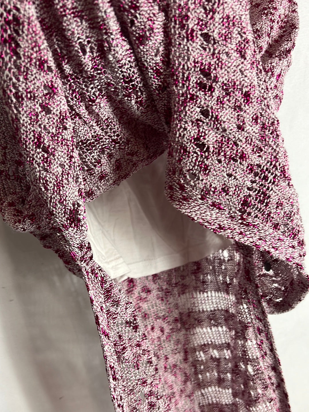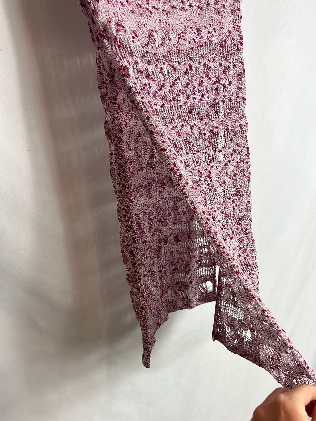 Mauve glitter thread knit midi skirt with side slits. 31cm waist, 79cm elasticated waist.