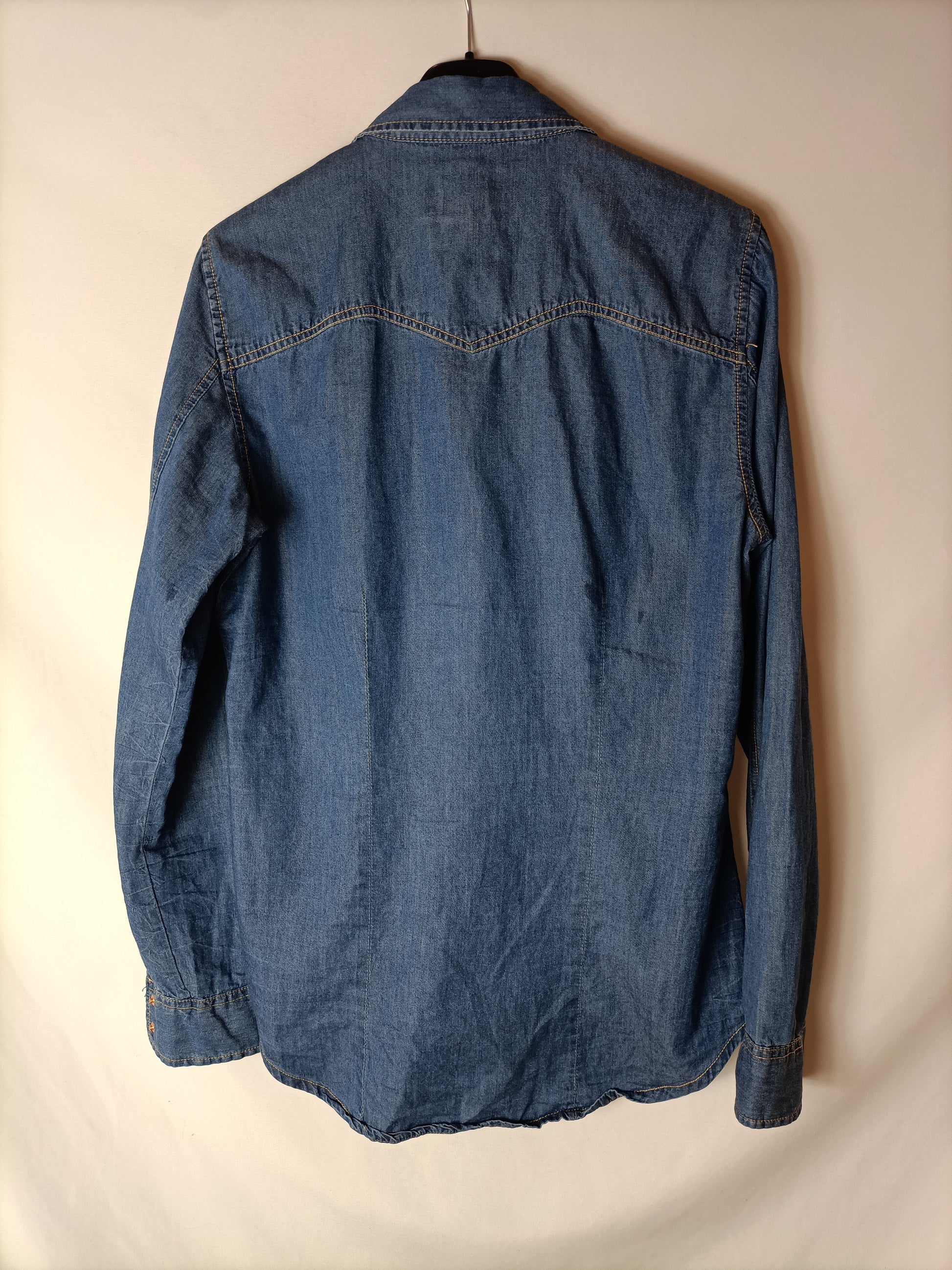 Basic dark denim shirt with studs at the collar. Armpit to armpit 48 cm Length 78 cm