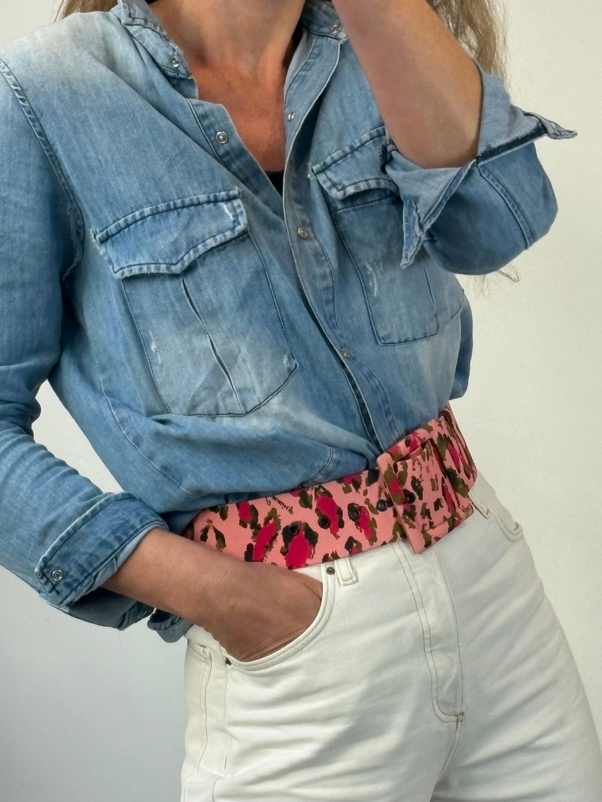 CAROLINA HERRERA . Cinturón rosa estampado