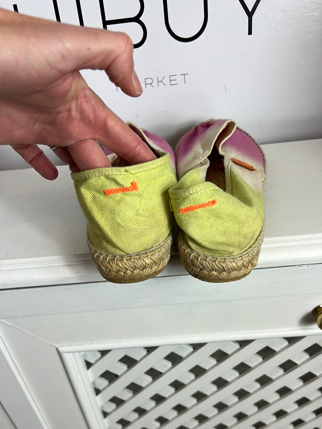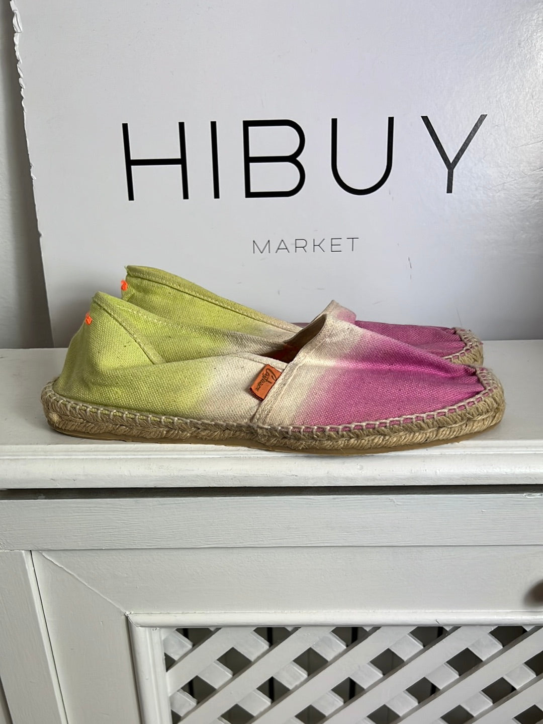 NEW, UNUSED. Flat tie-dye esparto sneakers.