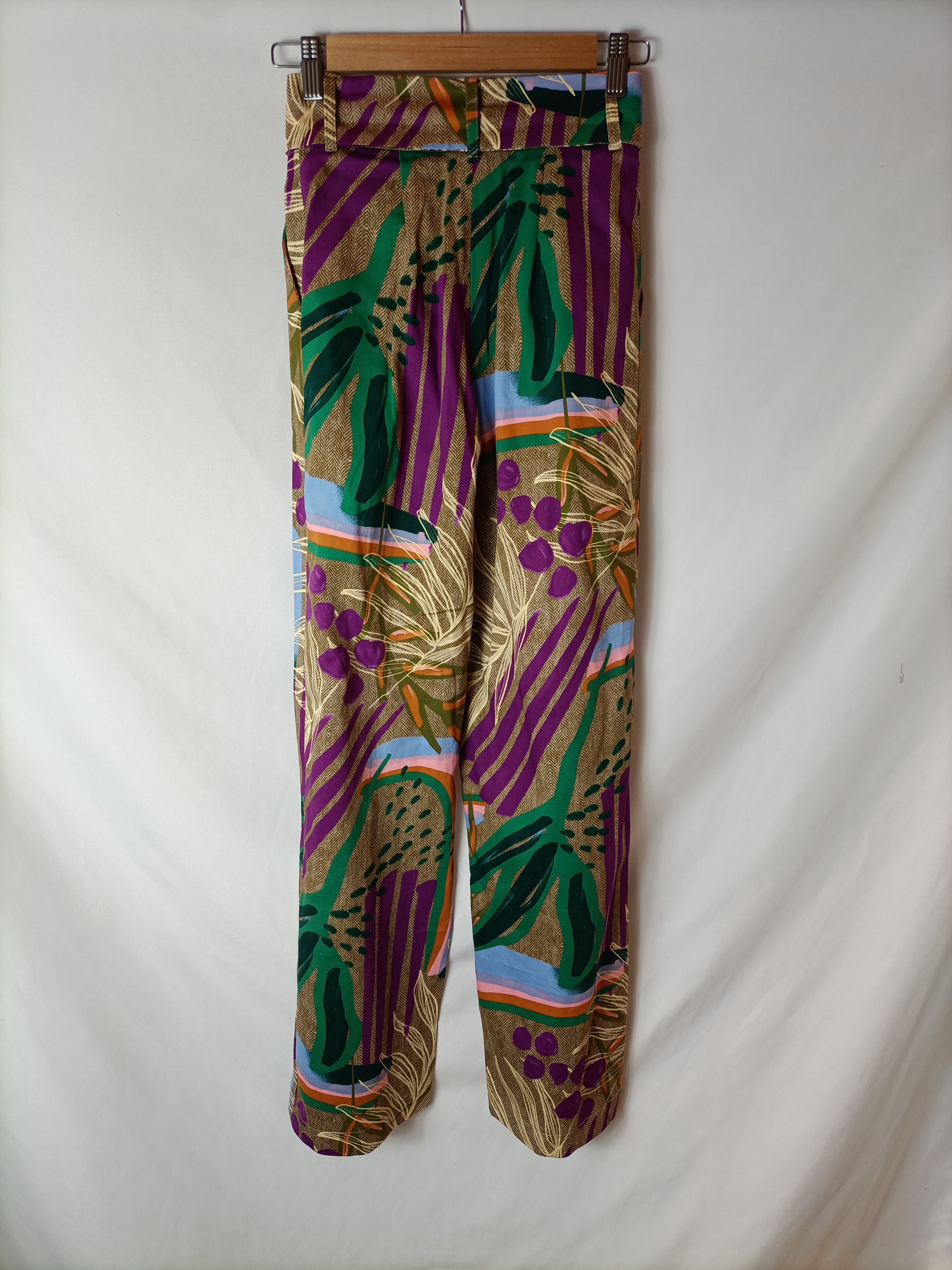 Wide-leg trousers with a jungle-effect print, straight cut and ankle-length. Waist 32 cm.