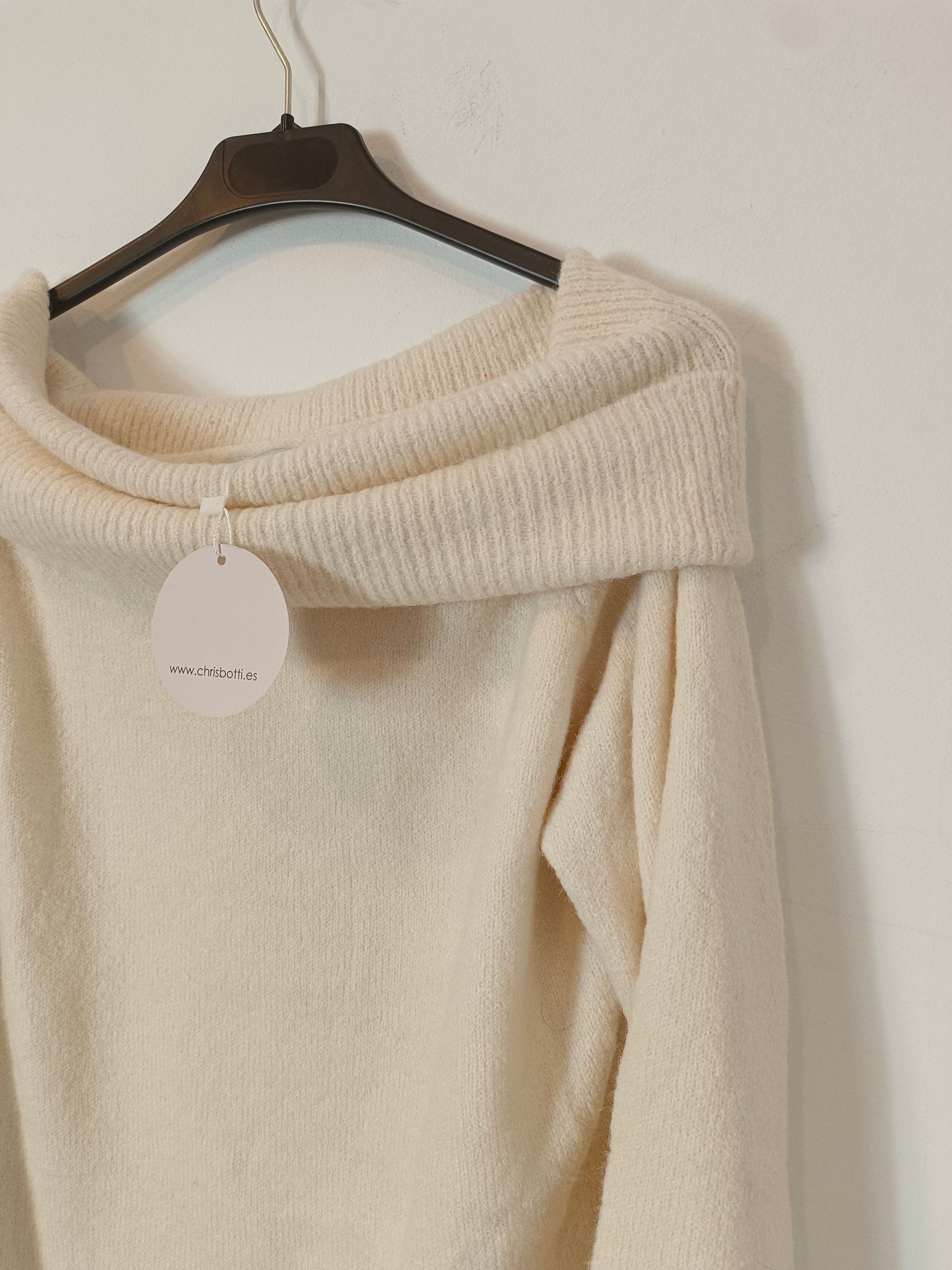 CHRISBOTTI. Jersey beige cuello amplio T.u(m)