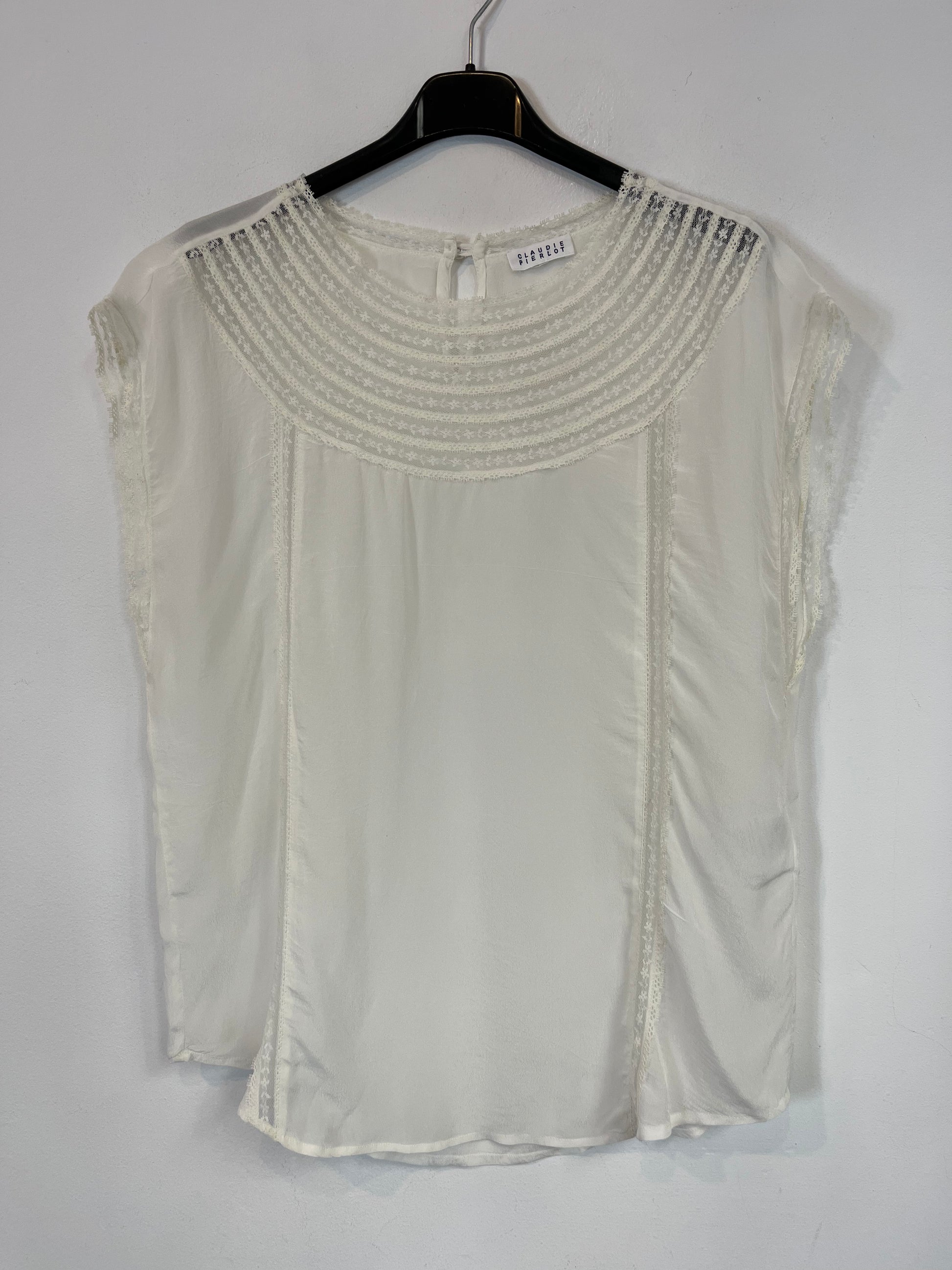 CLAUDIE PIERLOT. White lace blouse. T.S.