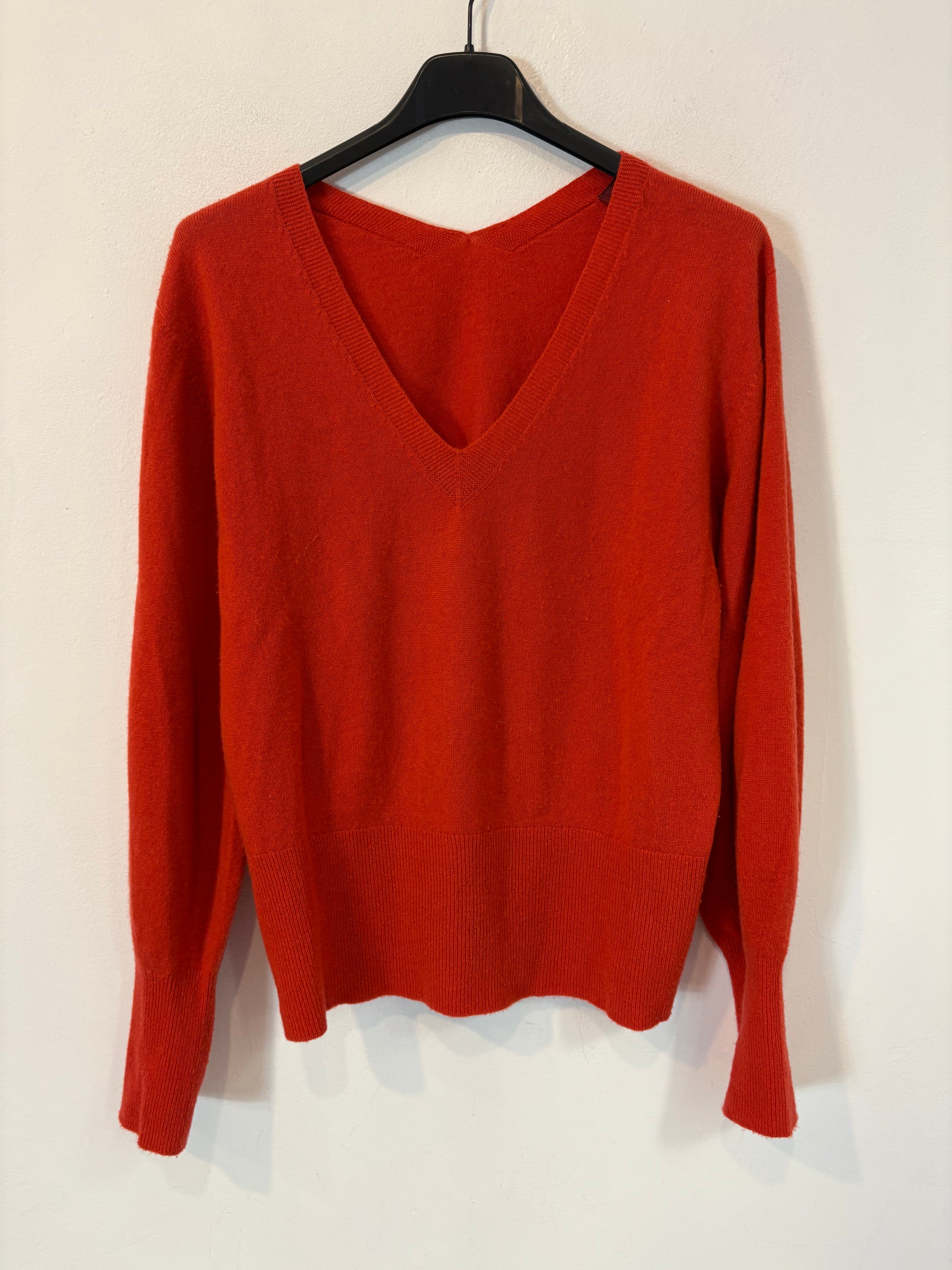 COMPTOIR DES COTONNIERS. Red cashmere V-neck sweater. T.S.