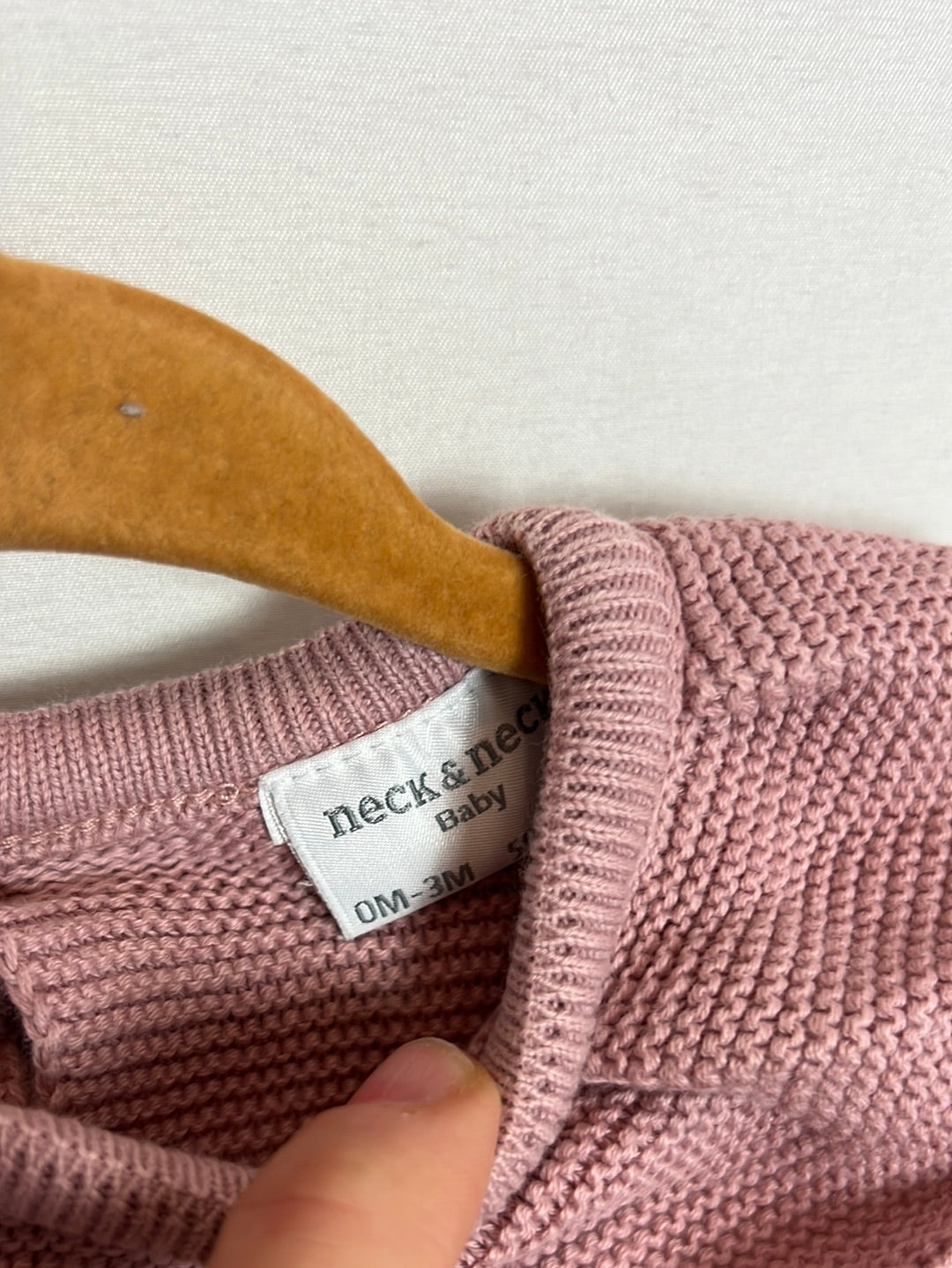 NECK&NECK. Pink knitted romper. Size 0-3 months