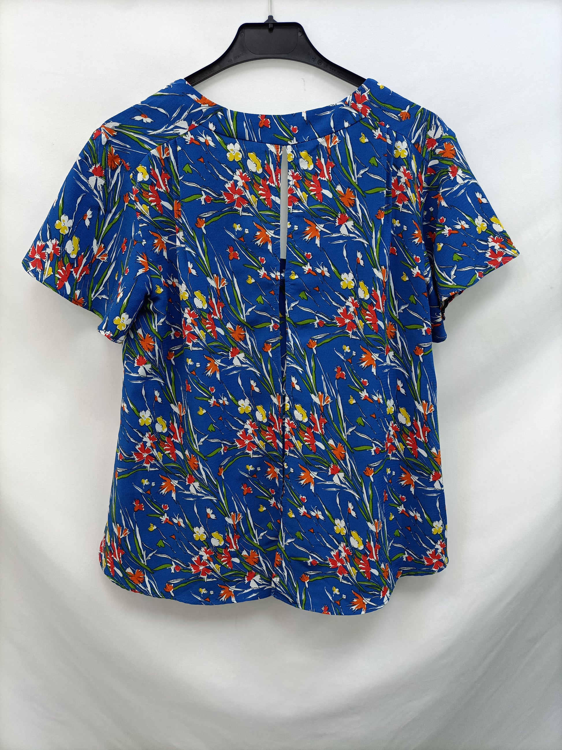 Flowy blue floral blouse with open back. Armhole to armhole 47 cm. Length 61 cm.