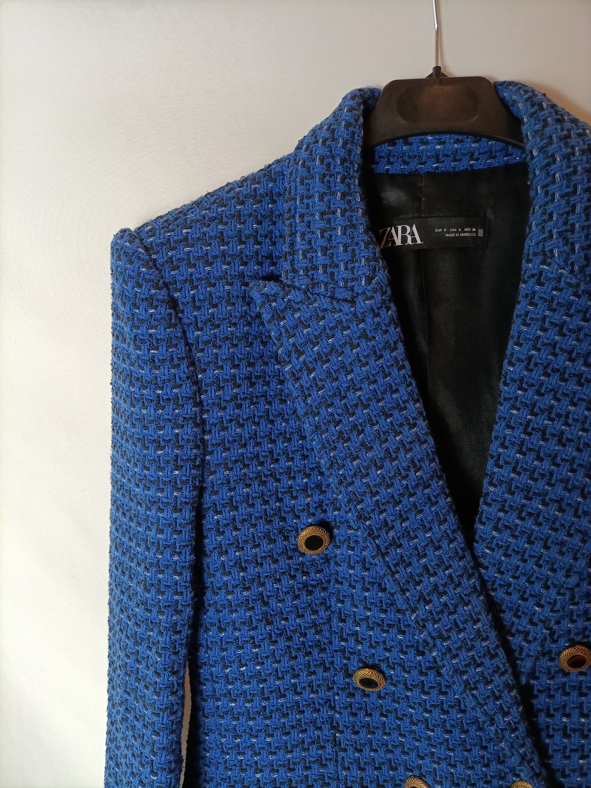ZARA.Blue tweed blazer Ts