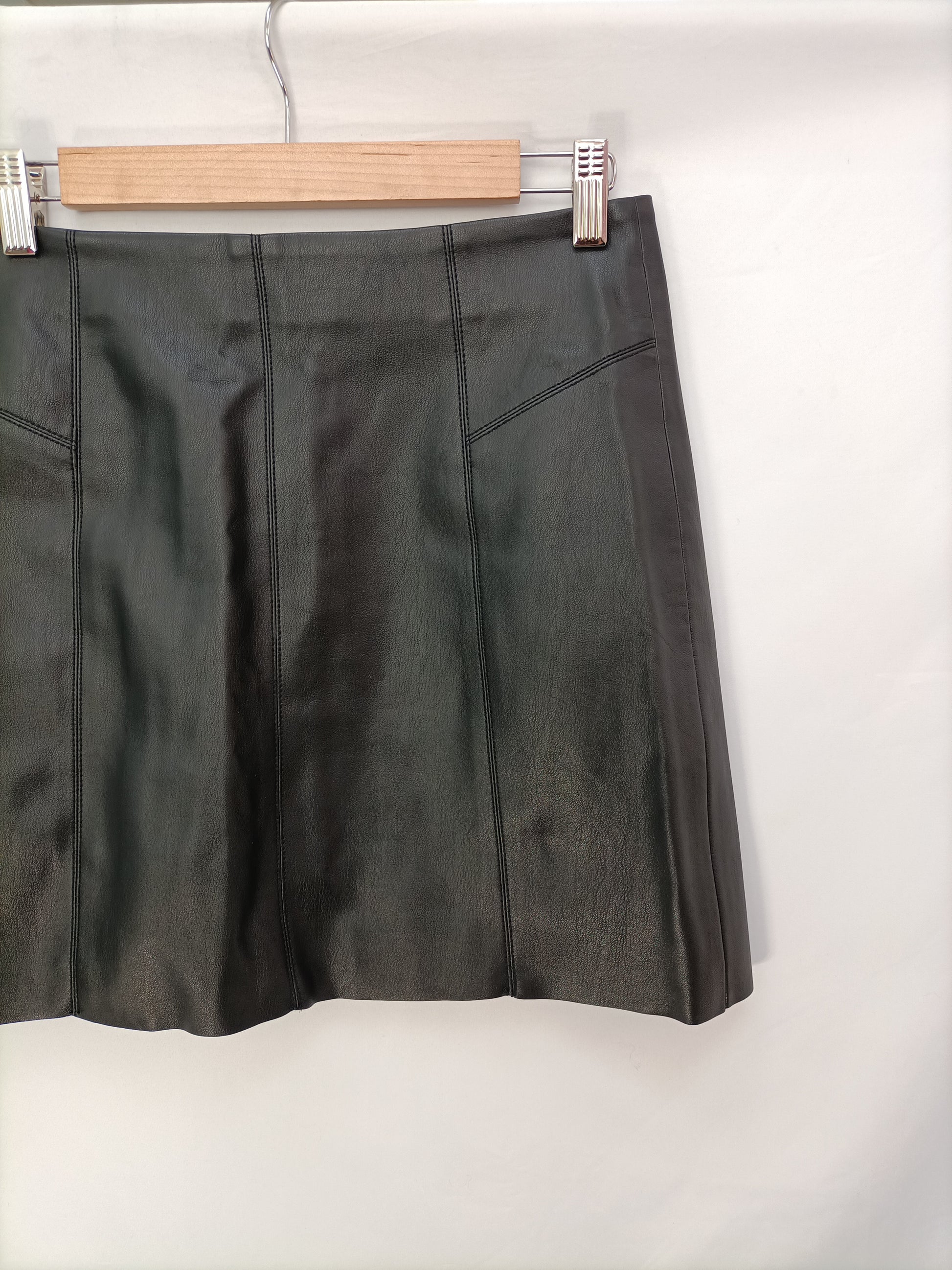 Short black faux leather skirt. Non-elastic. Waist 36 cm, Length 43 cm.