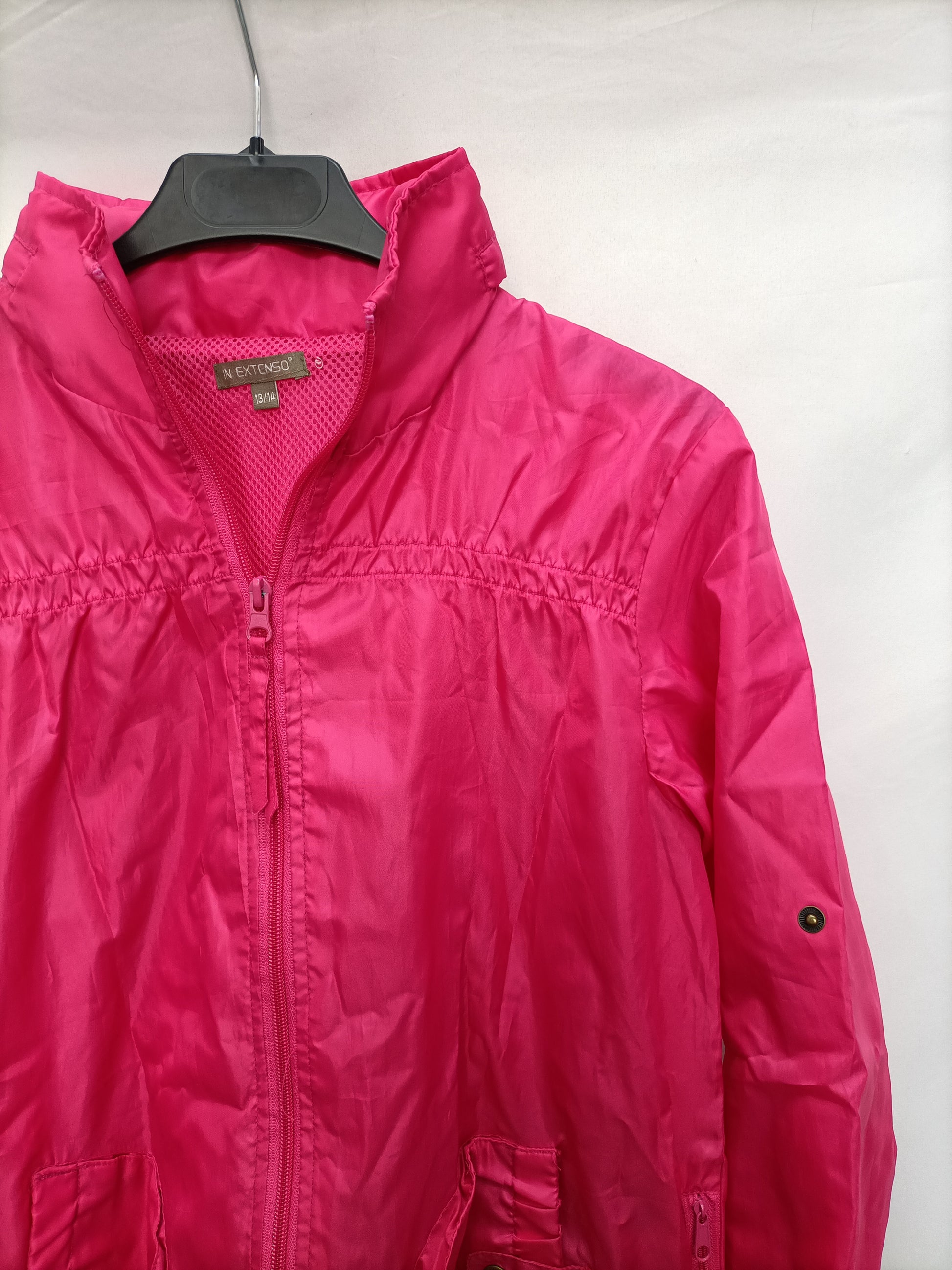 IN EXTENDED. Pink waterproof parka S. 13-14 years