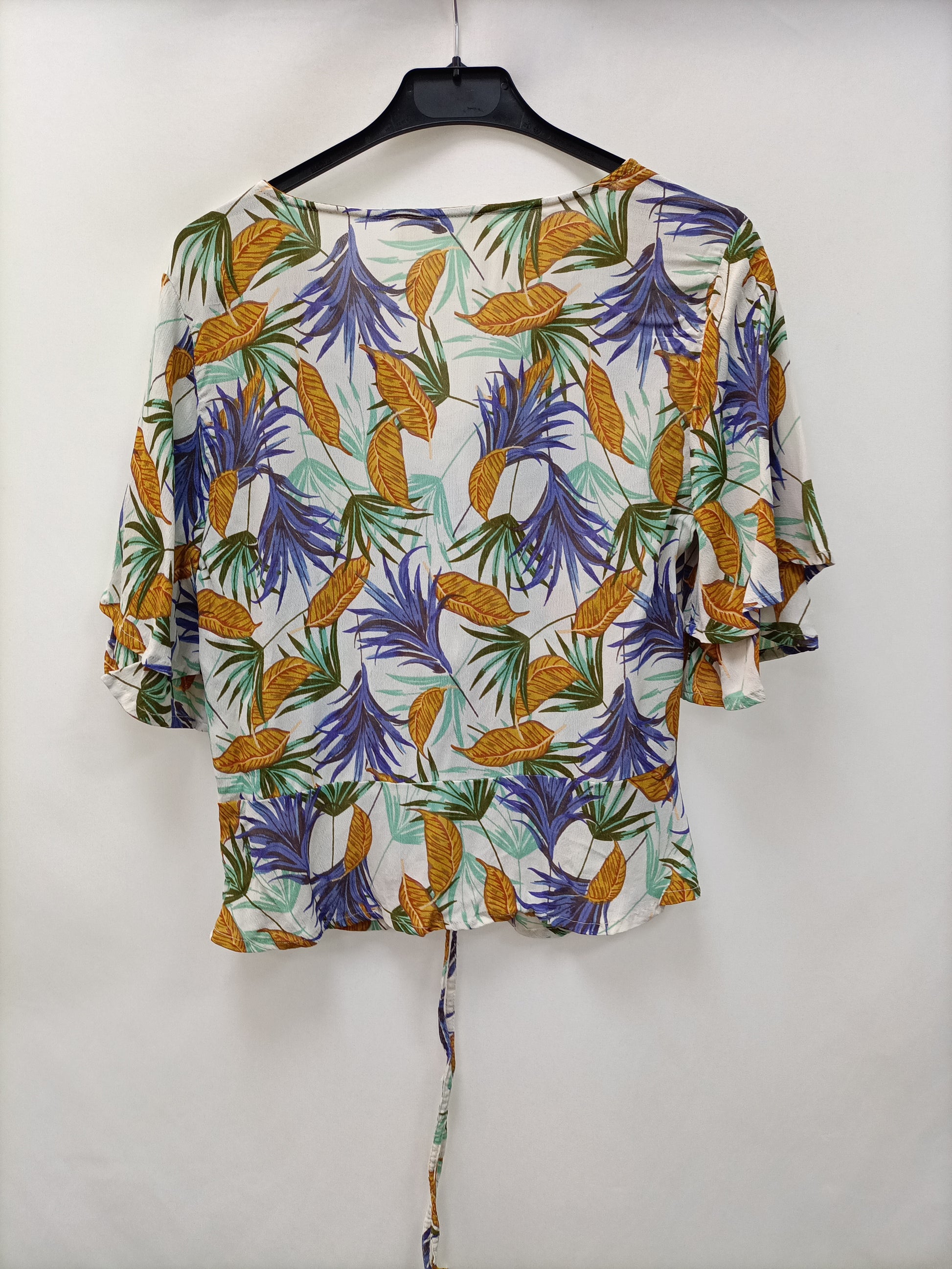 White top with leaf print. From armpit to armpit 44 cm and length 50 cm.