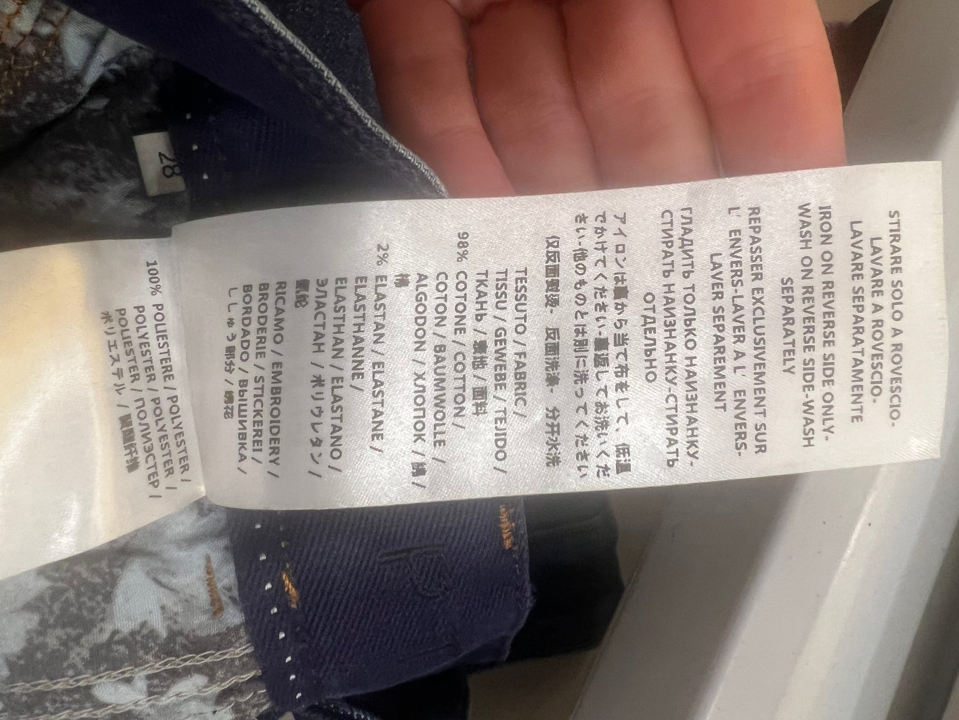 Skinny denim pants with semi-elastic embroidered details. Waist 40 cm, length 90 cm.