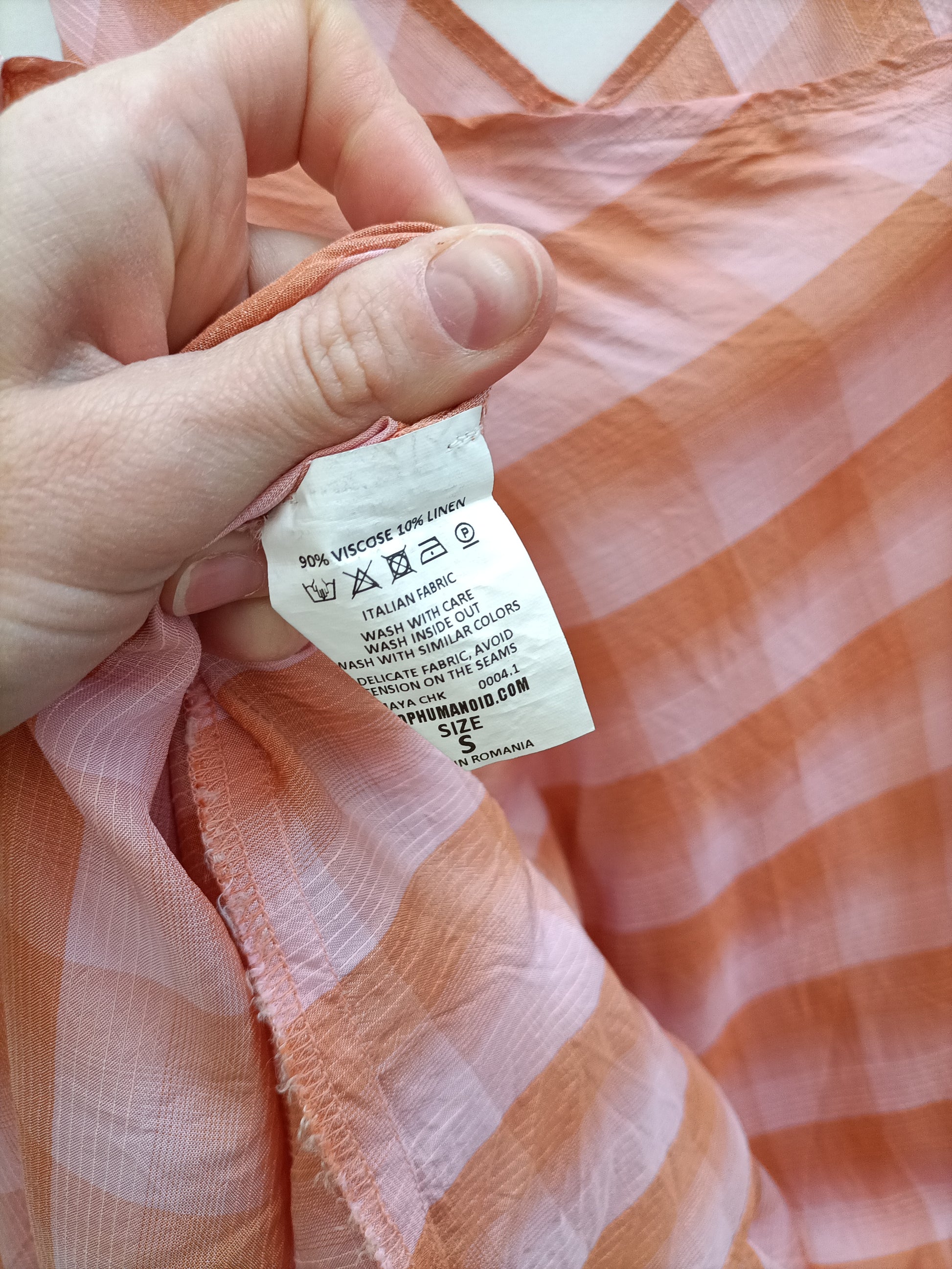 Midi dress with pink and orange checkered print. From armpit to armpit 46 cm Length 115 cm