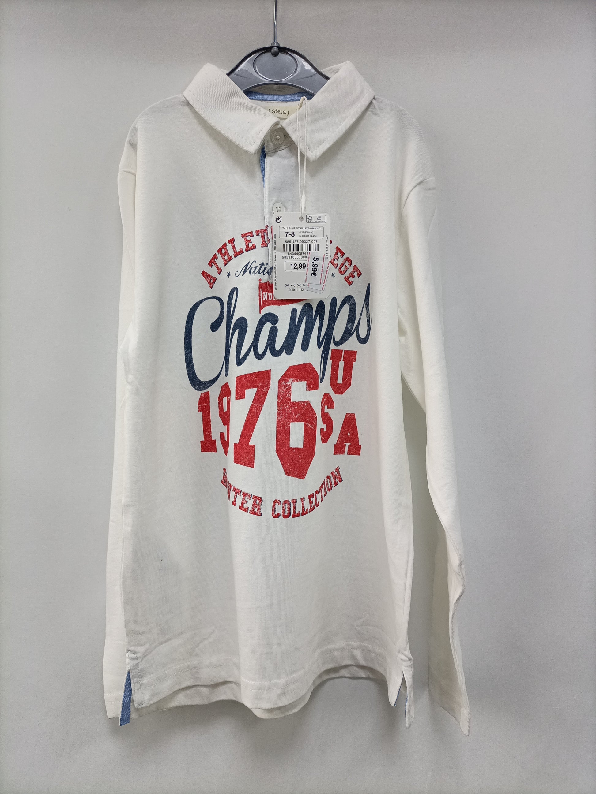 SFERA. White sweater/polo shirt, size 7-8 years