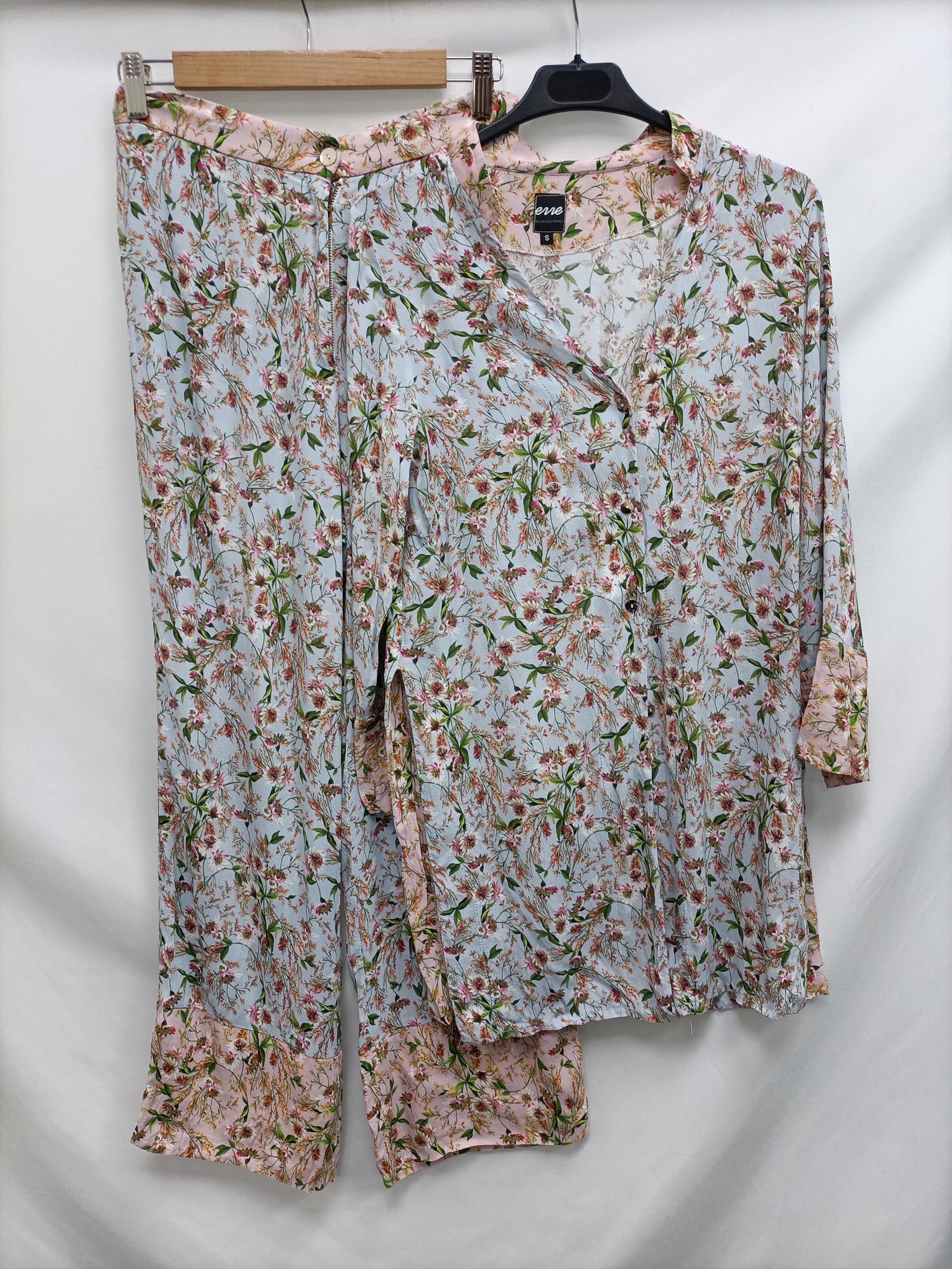 Two-tone fluid trousers with flowers Waist 36 cm Length 101 cm.