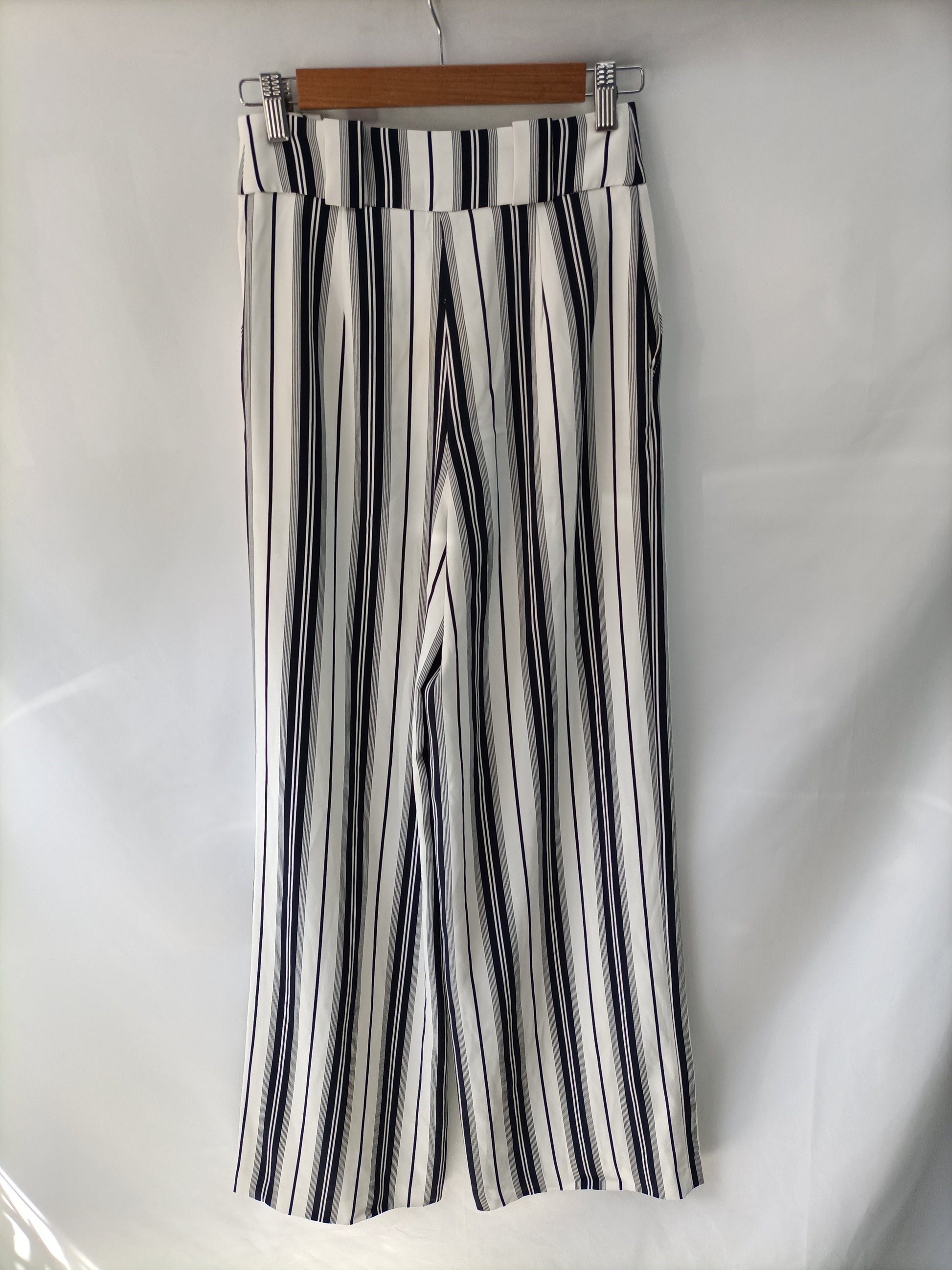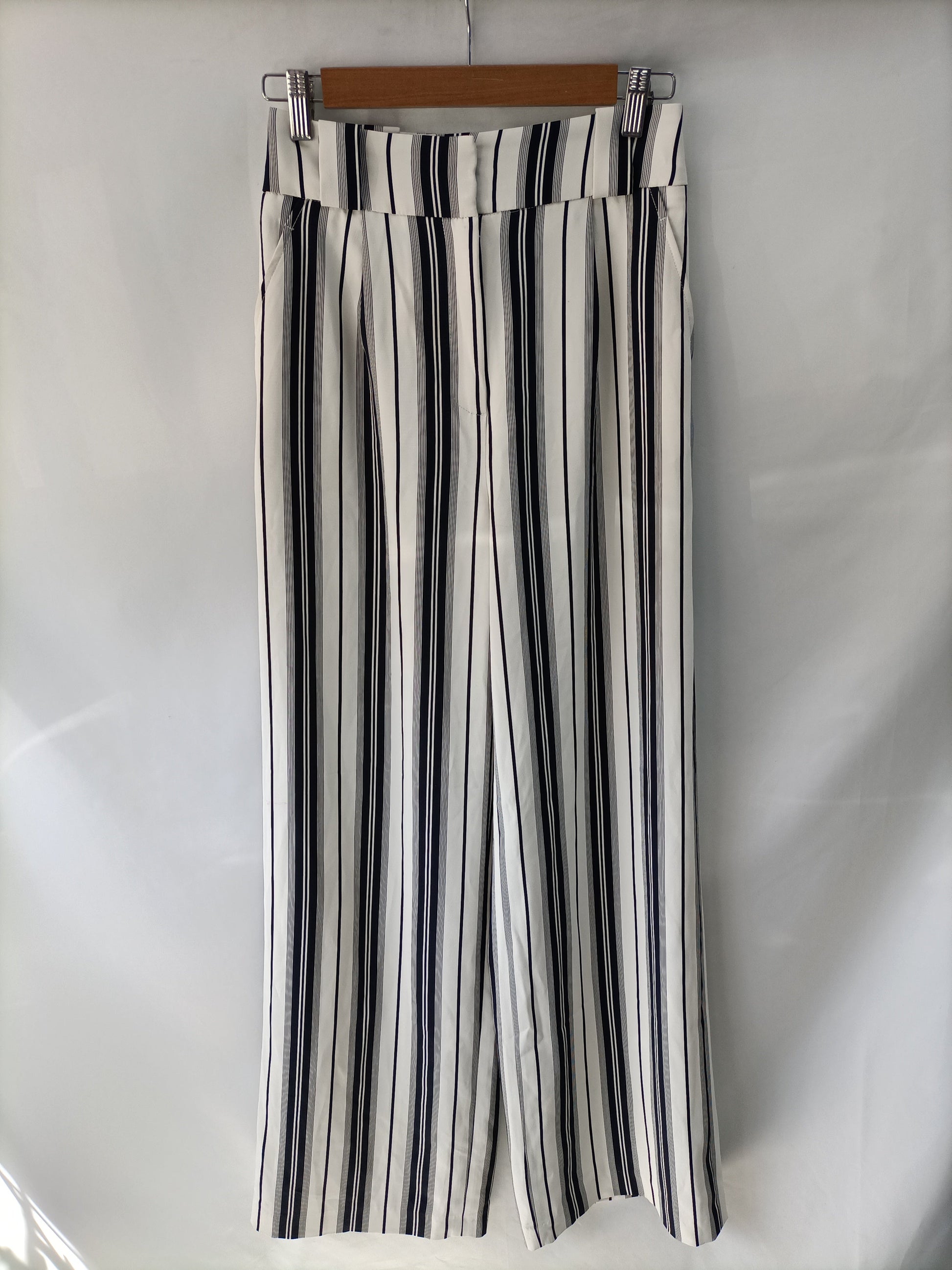 Long white palazzo pants with black stripes. Flowy and non-stretchy. Waist 34 cm, length 114 cm.