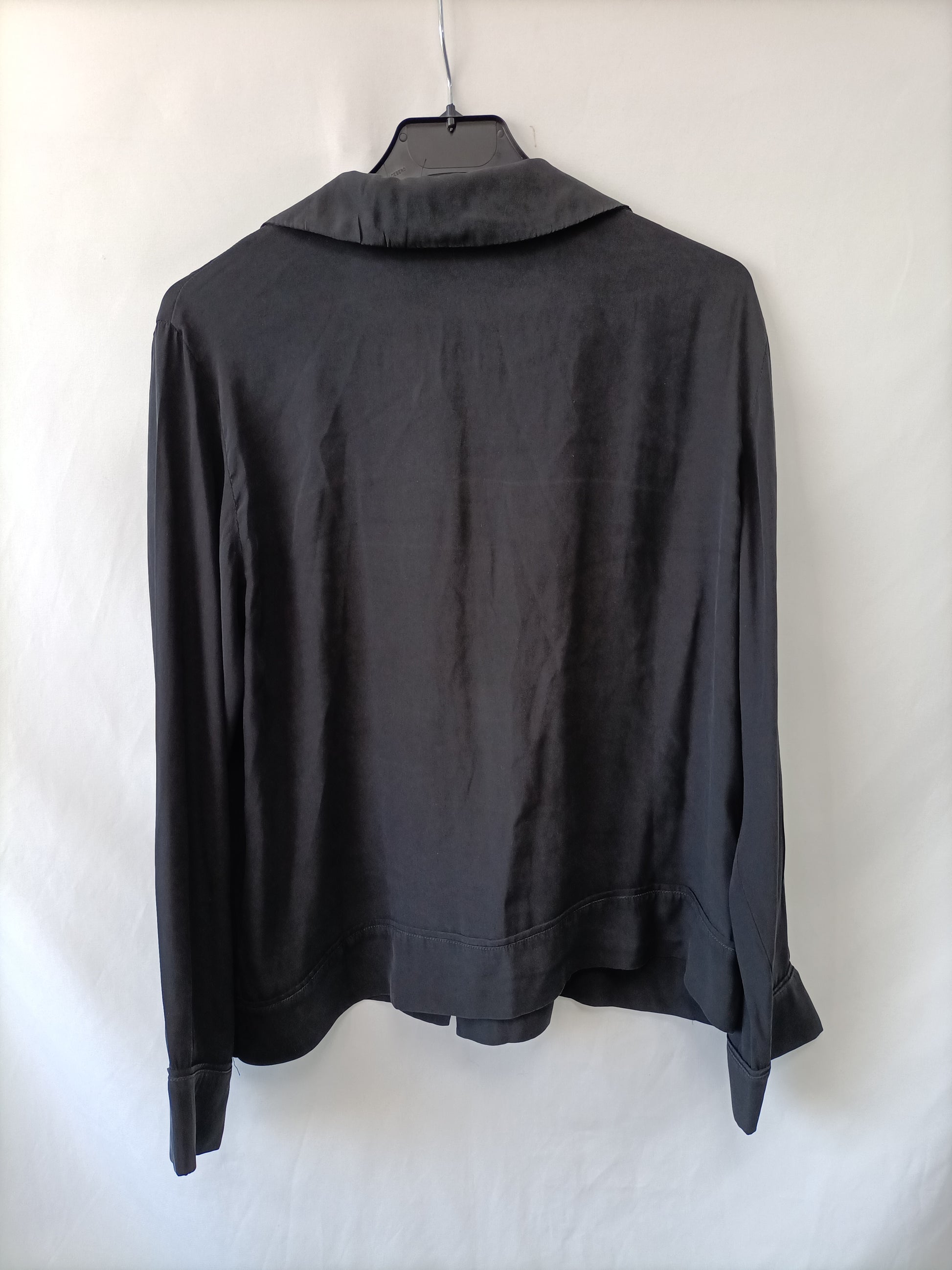 Black silk fluid blouse. Light and thin. Non-stretchy. 51 cm from armhole to armhole and 54 cm long.
