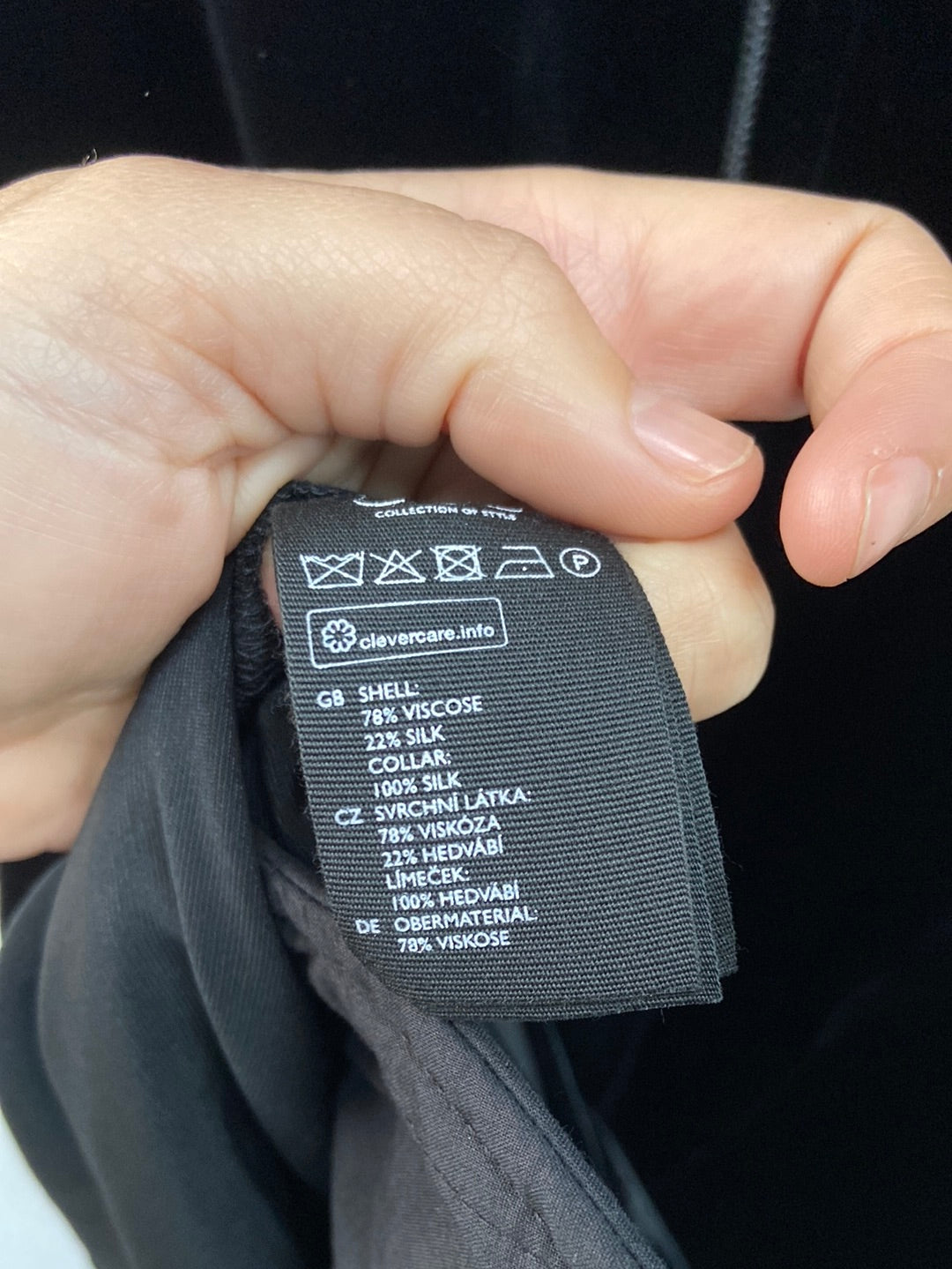 NEW WITH TAG. Short black velvet dress with a shirt collar. 51 cm from armhole to armhole and 89 cm long.