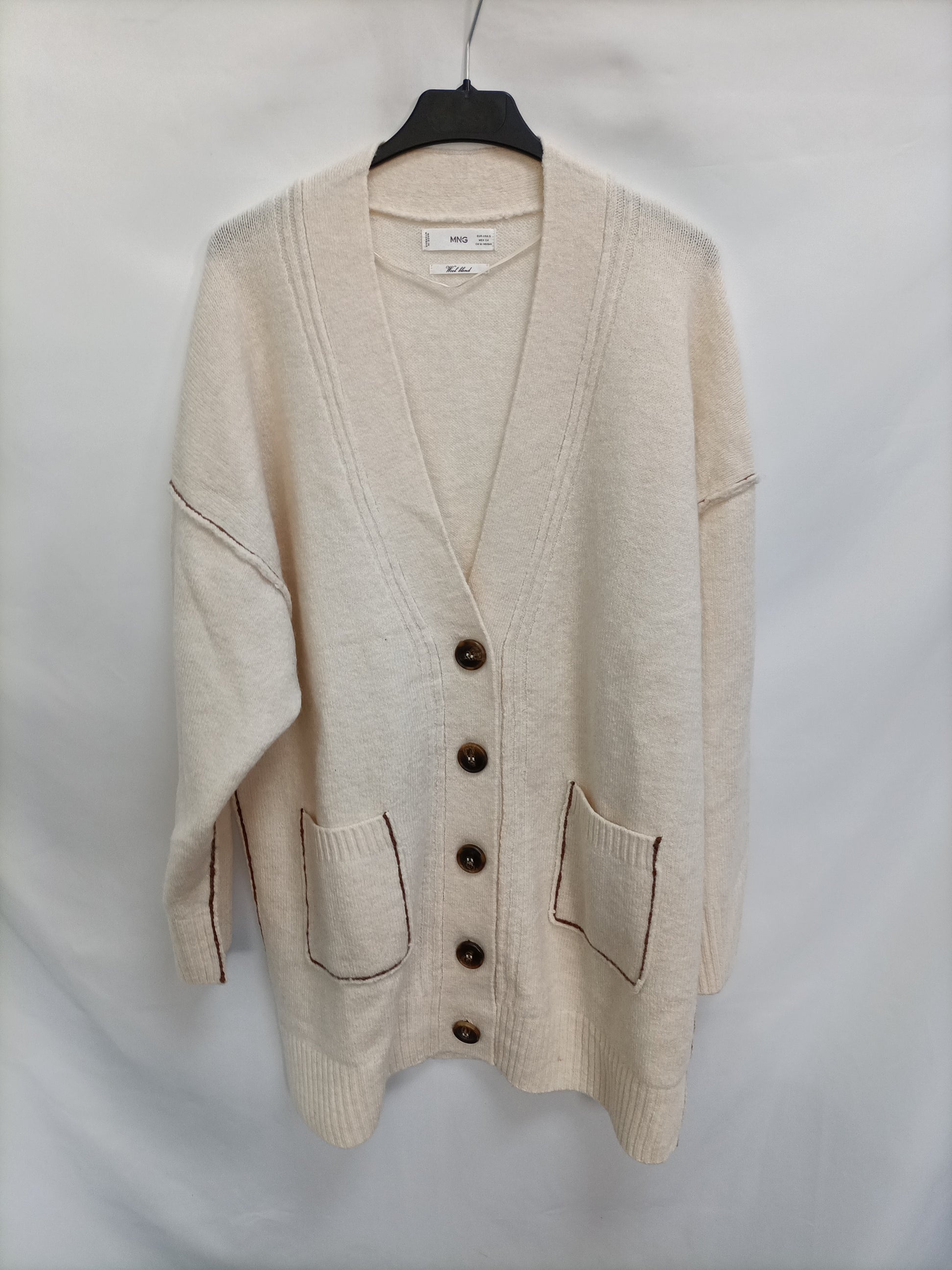 MANGO. Beige Ts knitted cardigan