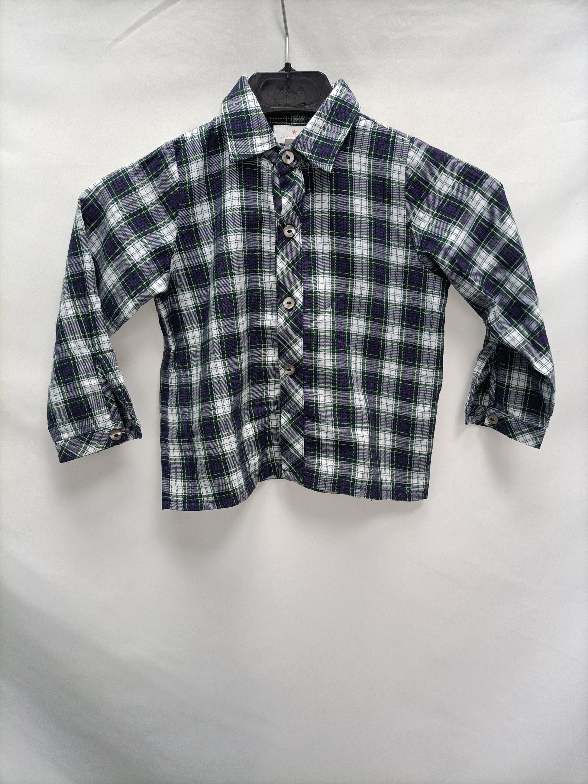 Green and purple plaid shirt. Non-stretch. Armhole to armhole 36 cm, length 40 cm.