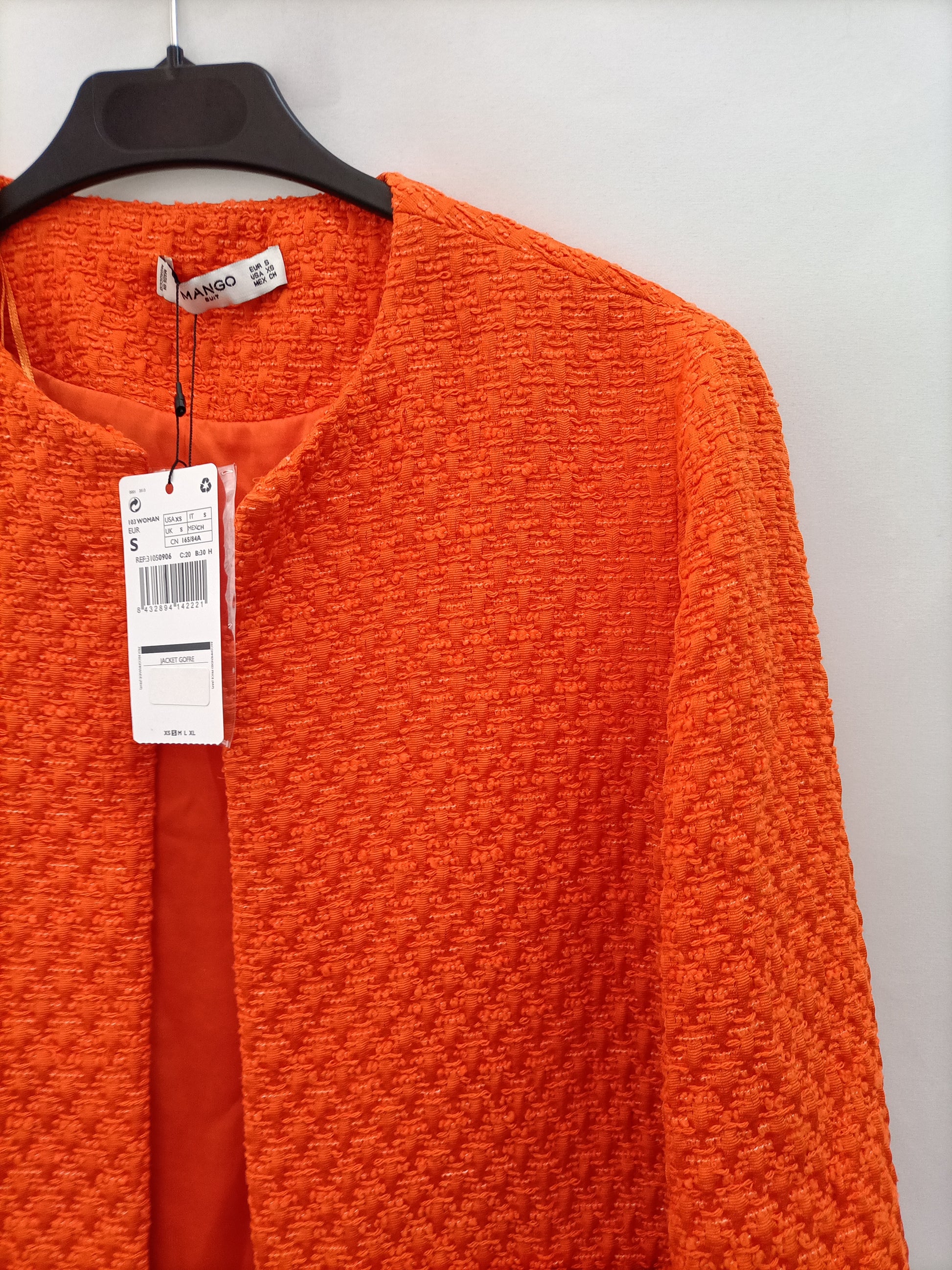 NEW WITH TAG. Orange tweed jacket . Does not button . From armhole to armhole 47 cm Length 53 cm
