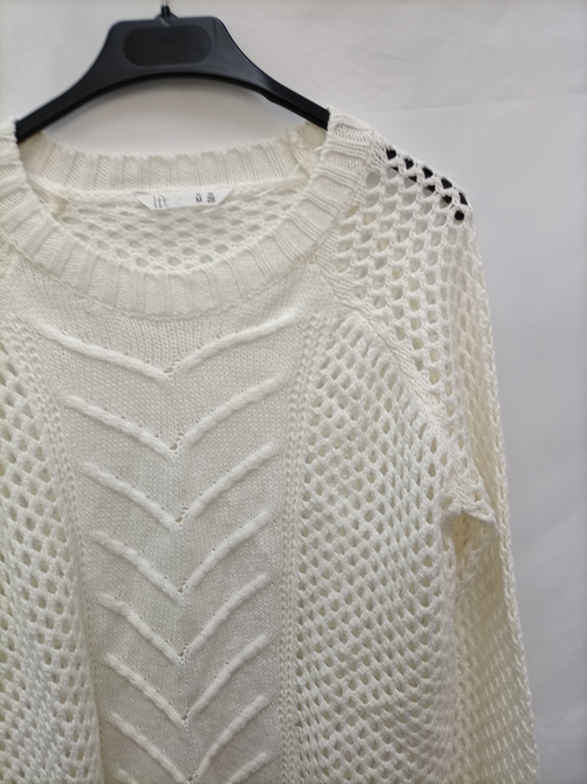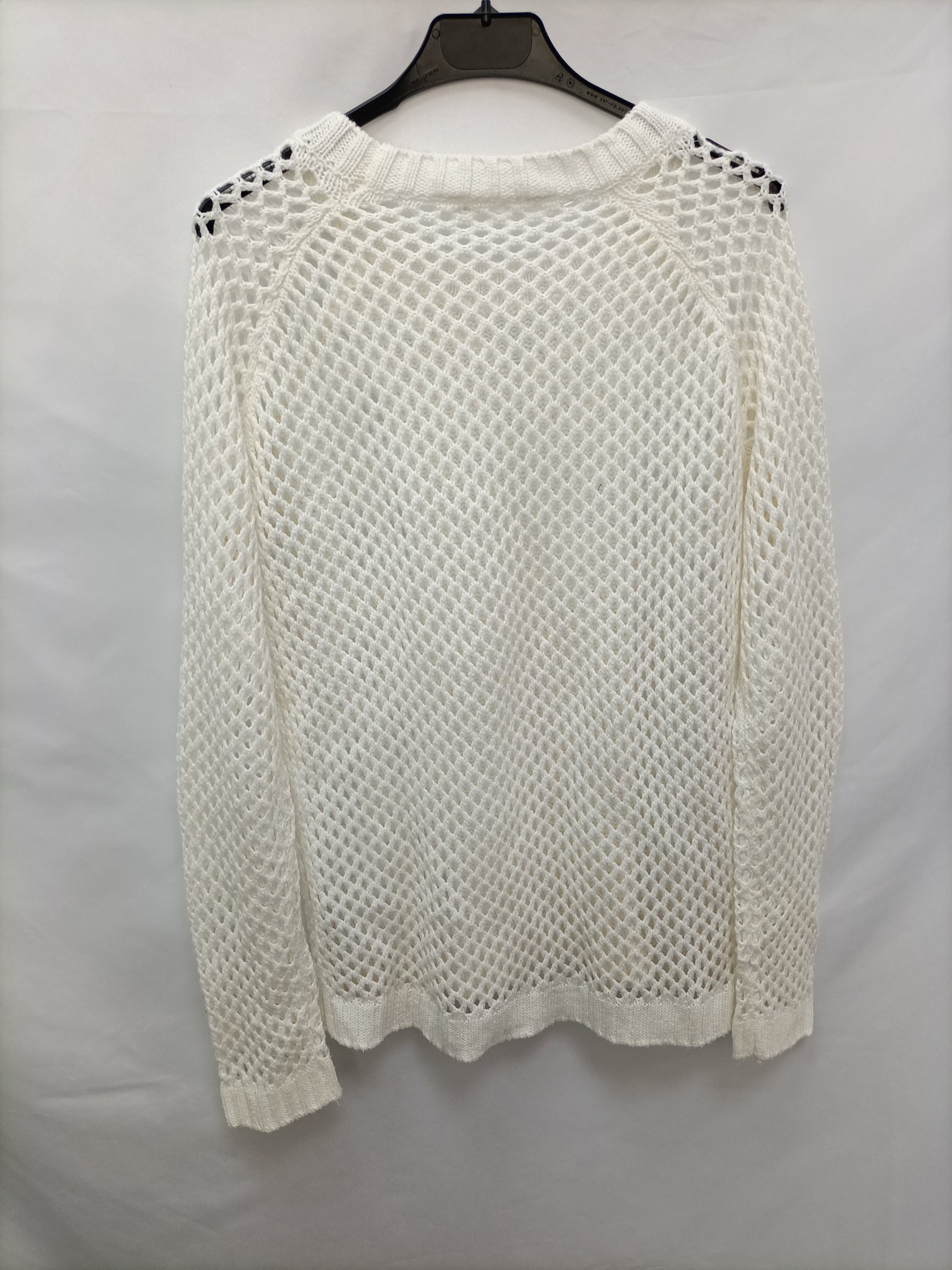 Jersey de punto troquelado blanco roto. Elástico. largo 68 cm