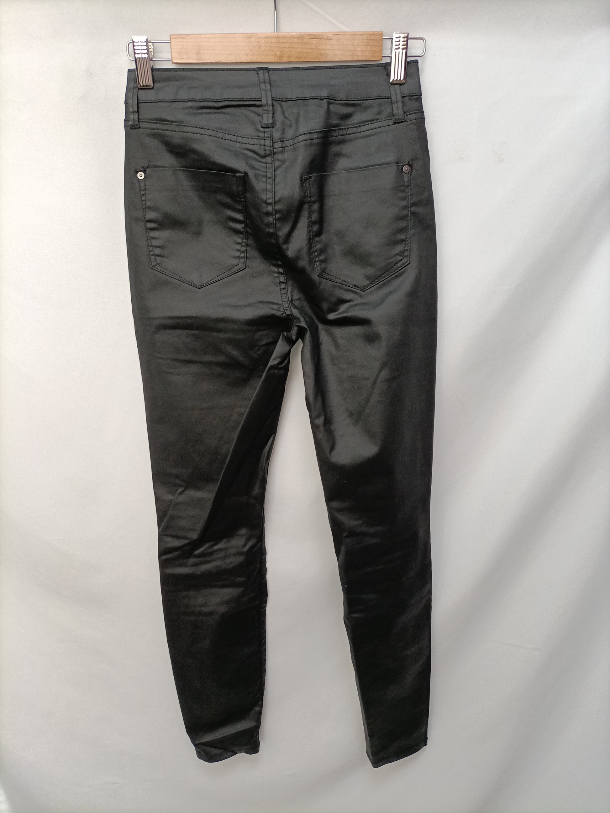Black waxed fabric trousers. Skinny fit. Elastic waist. 33 cm, length 100 cm.